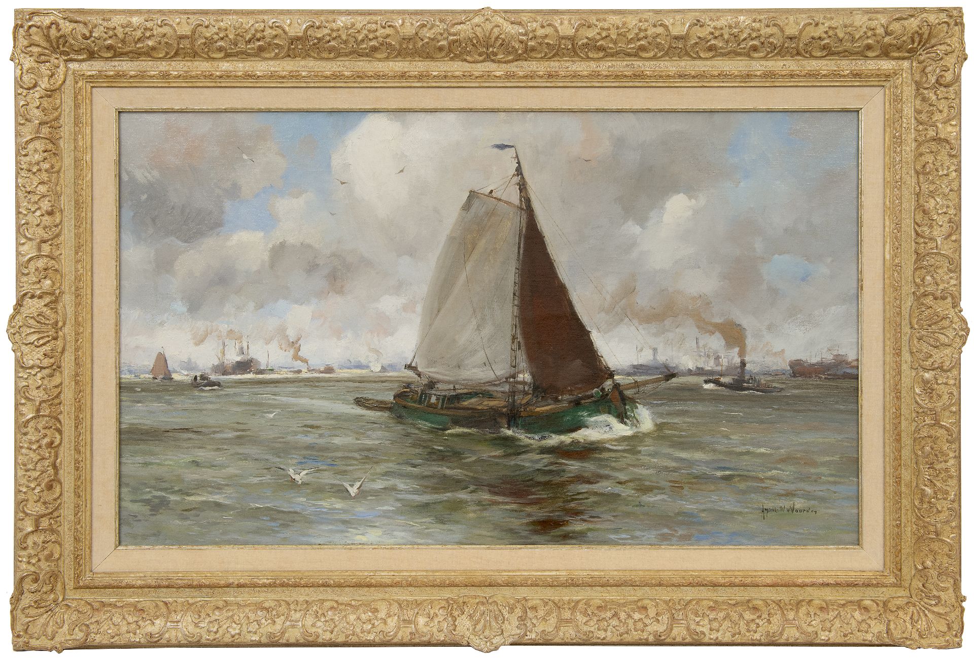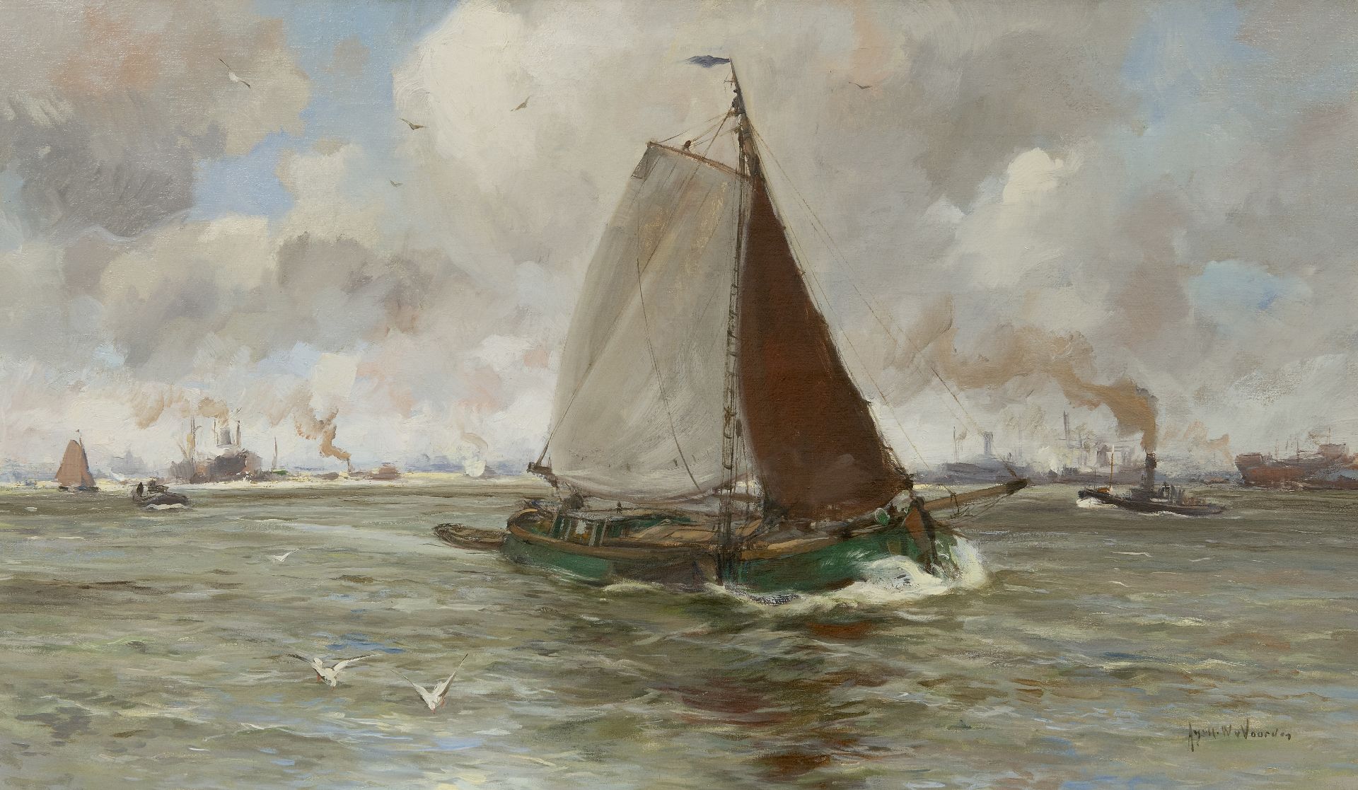 August van Voorden kunstwerk • schilderij • te koop Beurtschip op de Maas