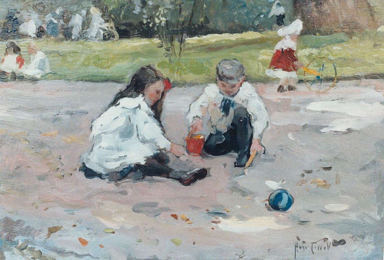 August van Voorden kunstwerk • schilderij • voorheen te koop Spelende kinderen in een park