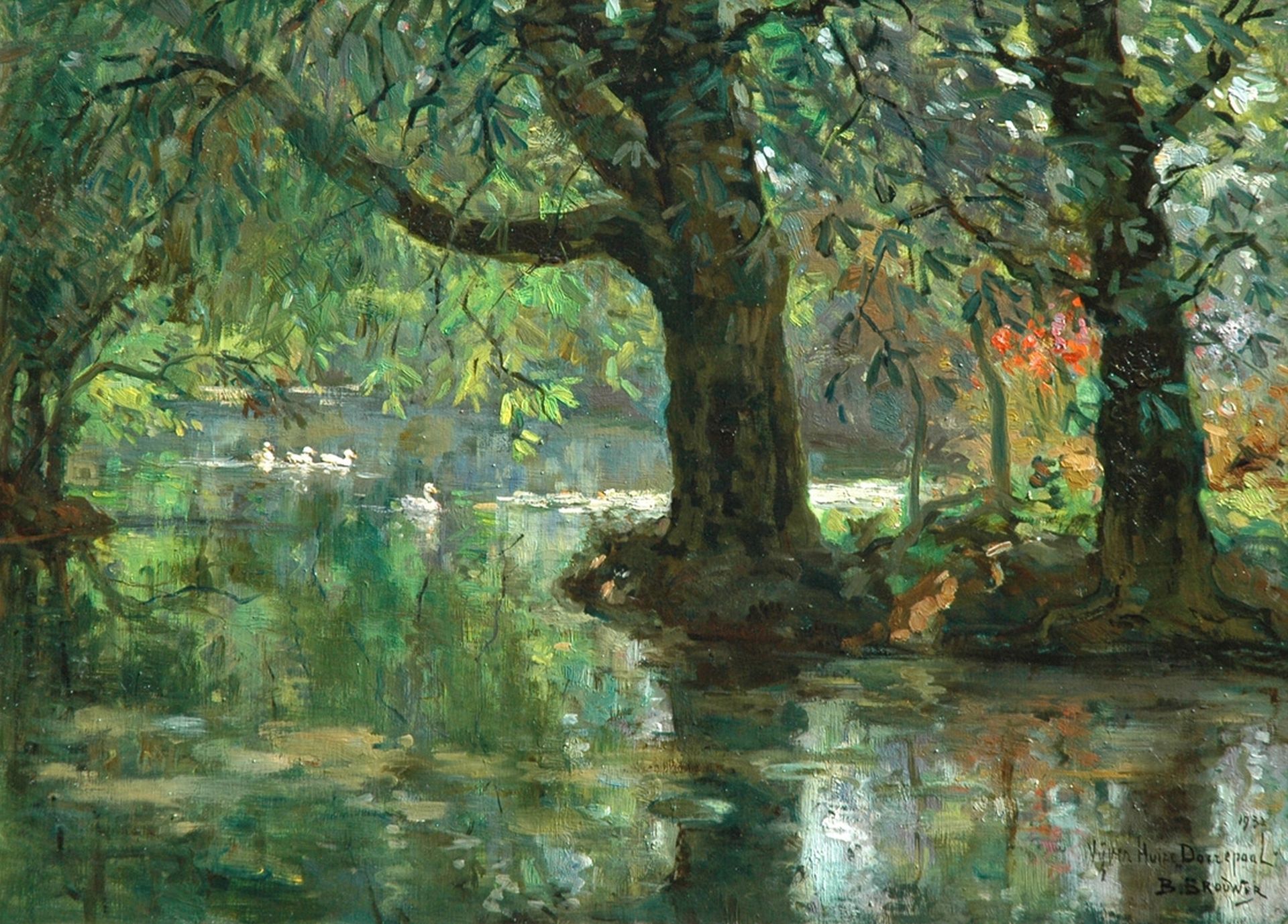 Barend Brouwer kunstwerk • schilderij • voorheen te koop De vijver van Huize Dorrepaal, Voorburg
