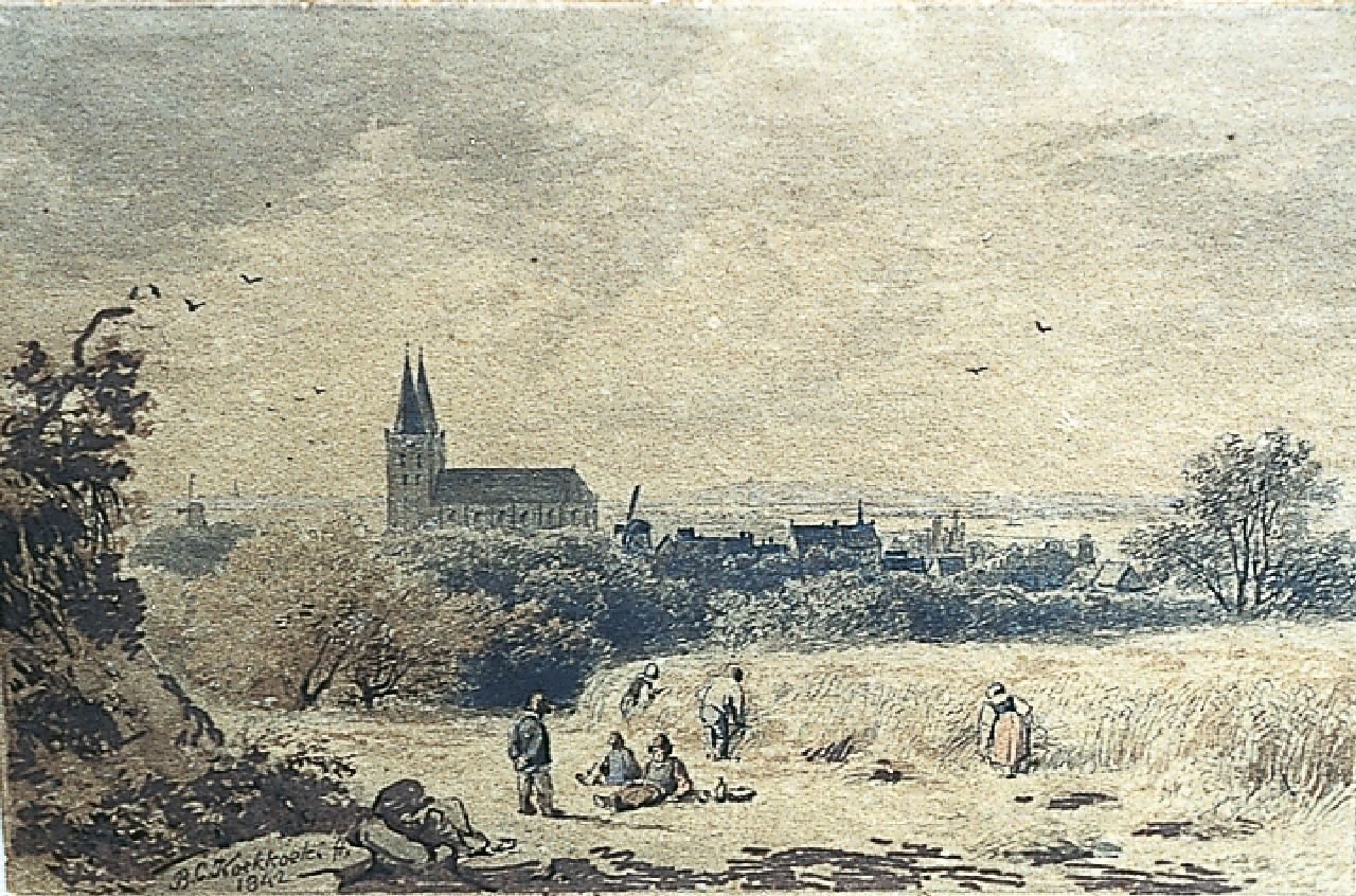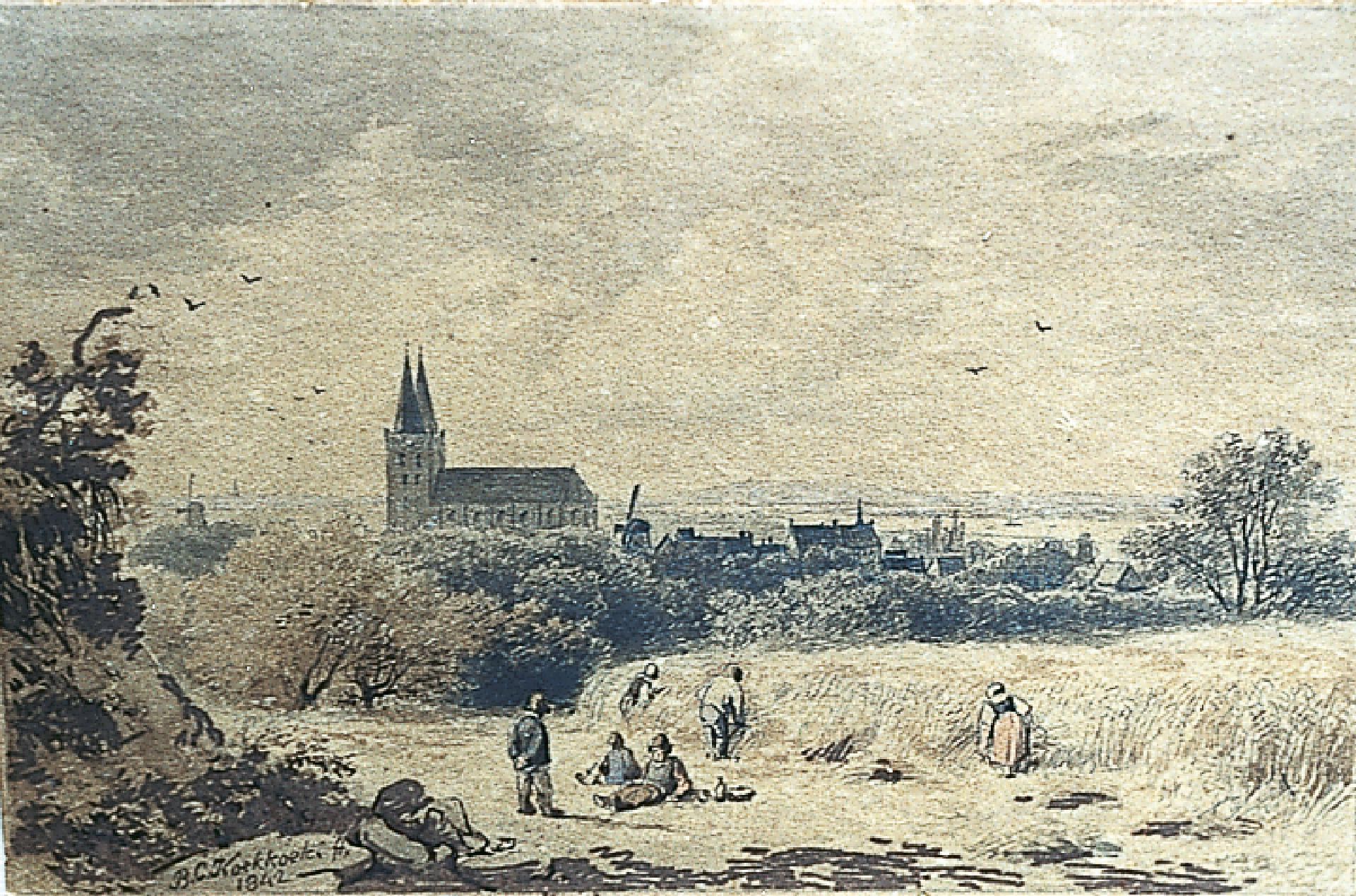 inkt, pen en aquarel op papier 8,0 x 12,2 cm, gesigneerd linksonder en gedateerd, 1842. Geschonken aan B.C. KOEKKOEK-HAUS