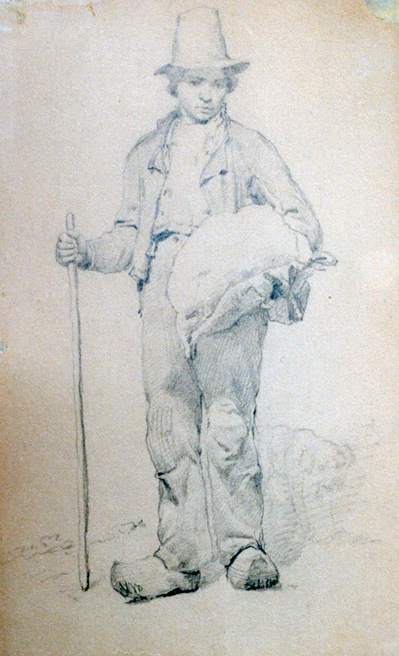 Barend Cornelis Koekkoek kunstwerk • aquarel • tekening • voorheen te koop Potloodtekening van een jonge boerenknecht
