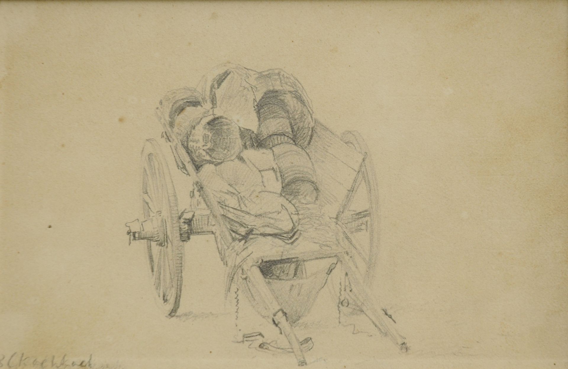 Barend Cornelis Koekkoek kunstwerk • aquarel • tekening • voorheen te koop Studie van een kar