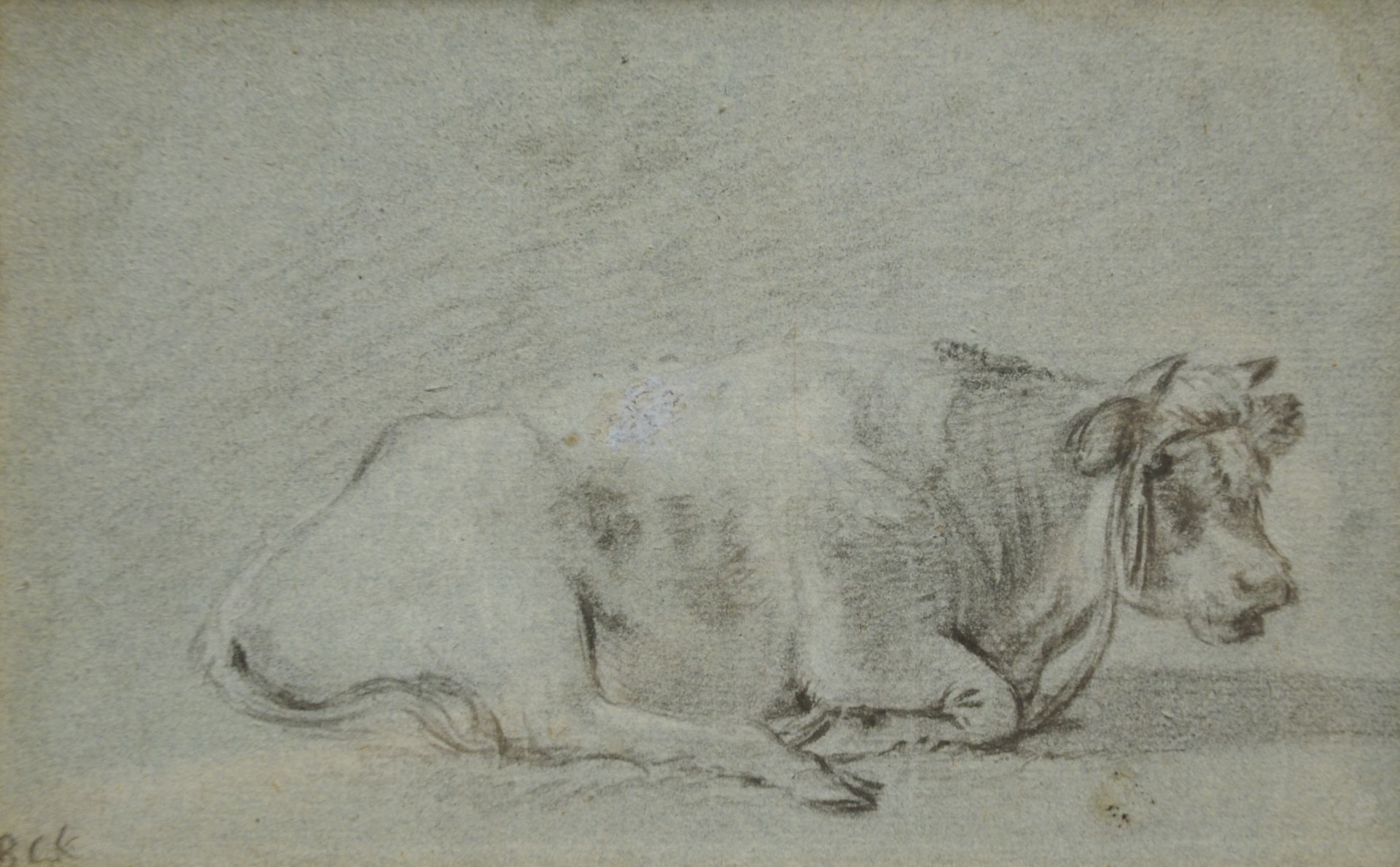 Barend Cornelis Koekkoek kunstwerk • aquarel • tekening • voorheen te koop Studie van een rustende koe