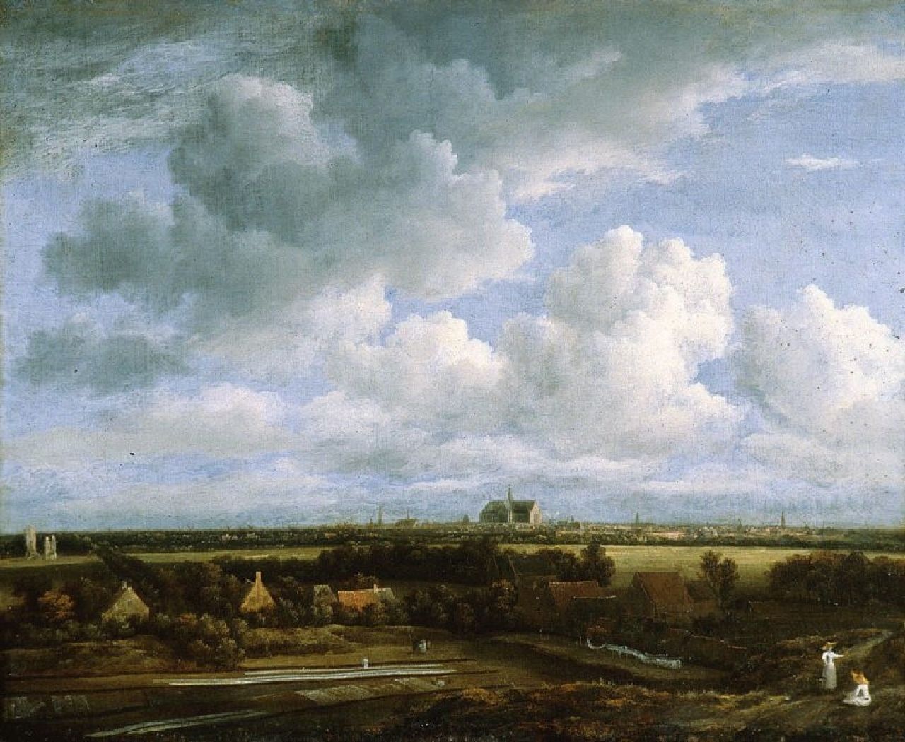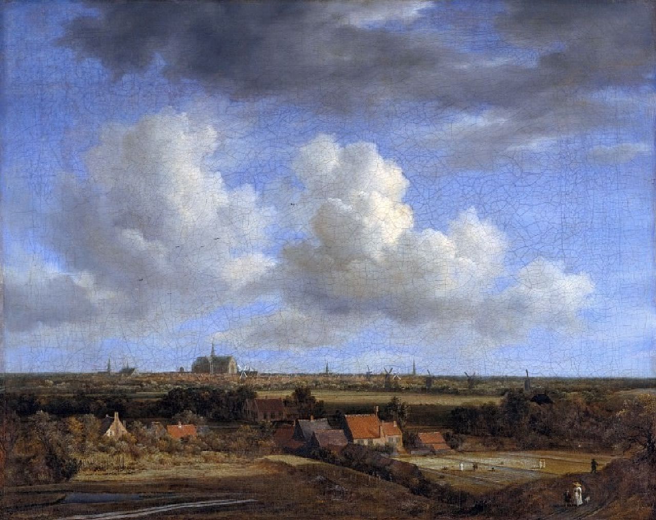 Koekkoeks 17e-eeuwse voorganger Jacob van Ruisdael schilderde wel 30 gezichten op Haarlem vanuit de duinen. Bij Koekkoek zien we dezelfde lage horizon zodat alle aandacht uitgaat naar de indrukwekkende wolkenlucht. Het schilderij was in 1916 te koop bij Kunsthandel C.M. van Gogh, de ‘winkel van oom Cor’ zoals Vincent het in zijn brieven noemde.