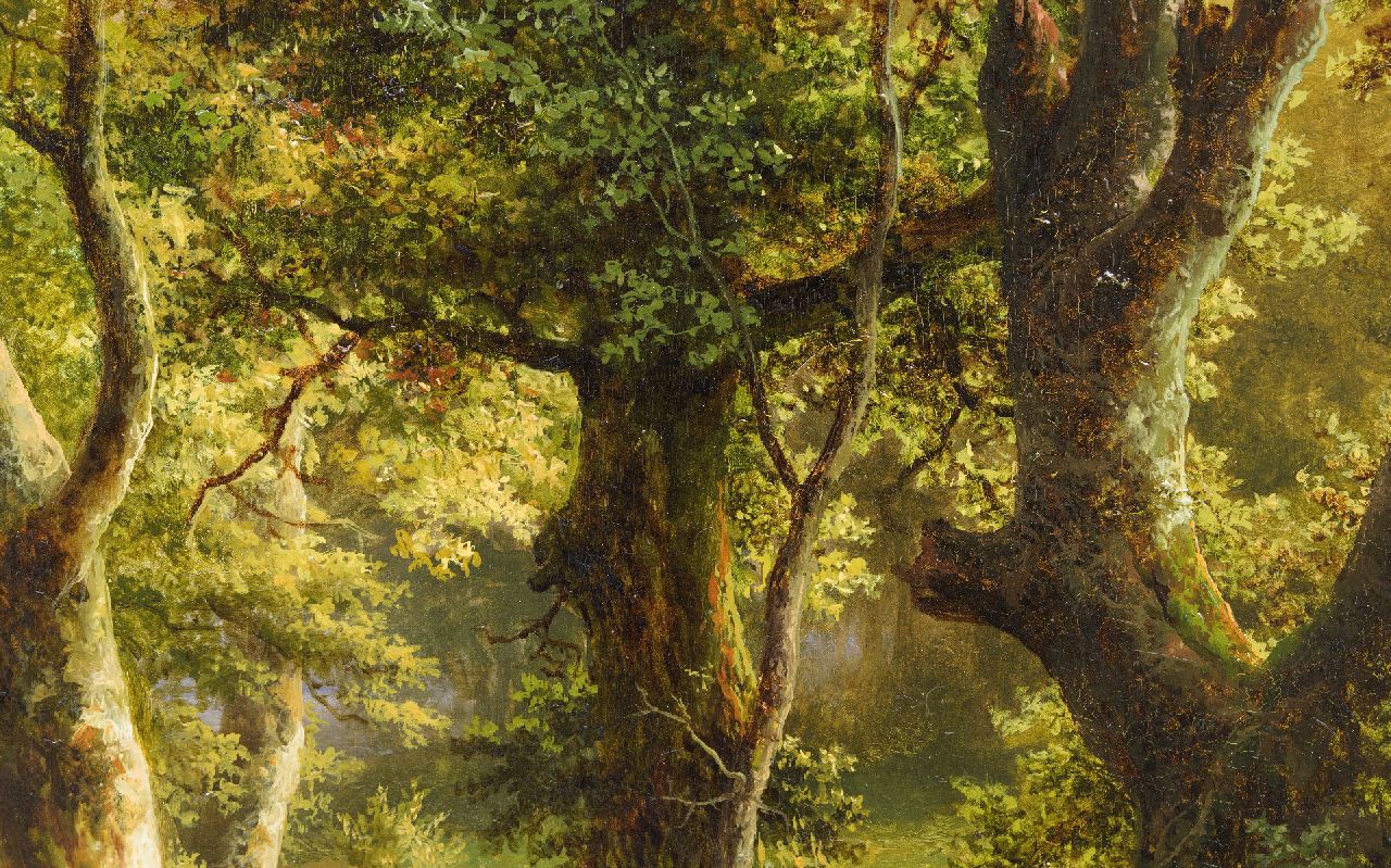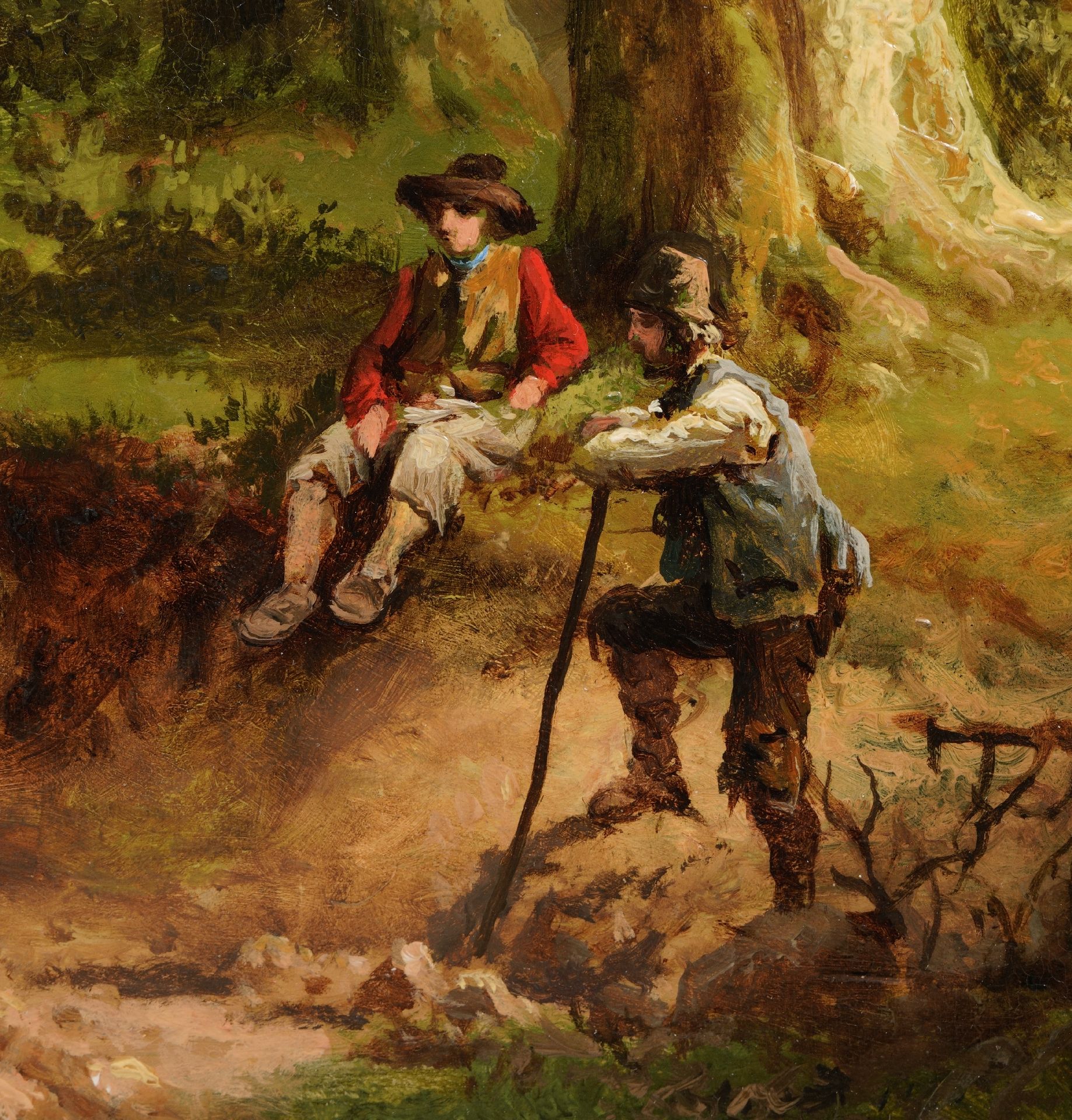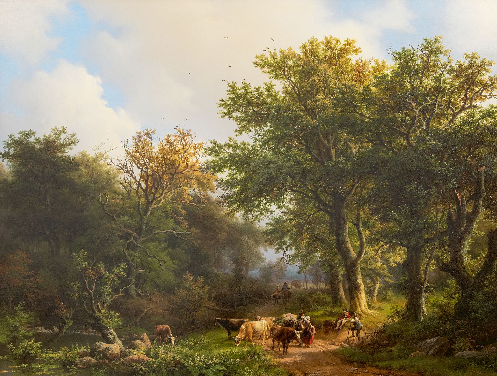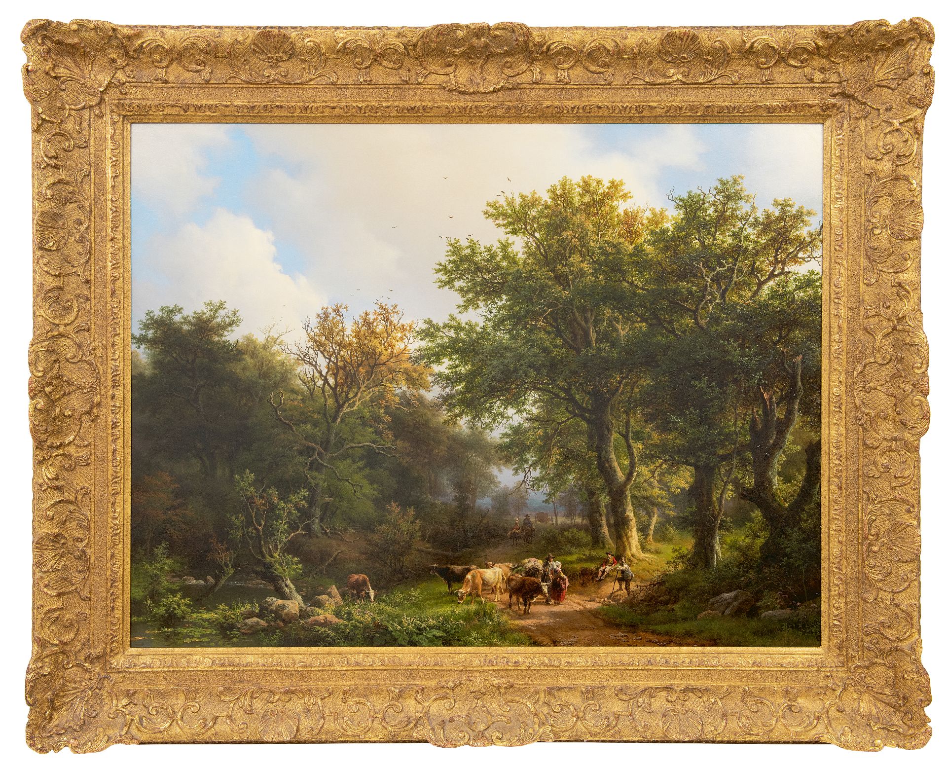 Barend Cornelis Koekkoek kunstwerk • schilderij • voorheen te koop Zomers bosgezicht met vee en figuren