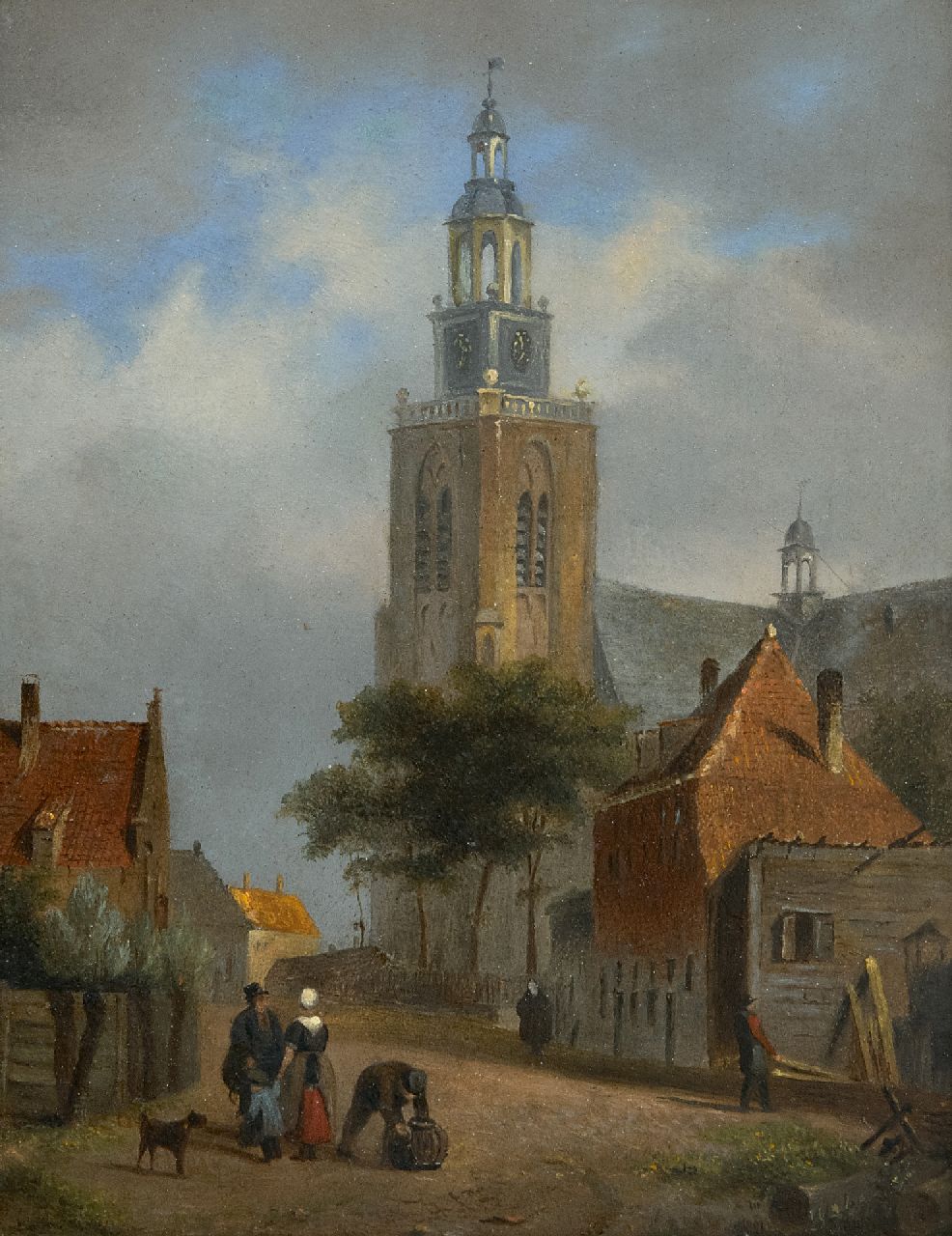 Bart van Hove kunstwerk • schilderij • te koop Dorpsgezicht met de Grote Kerk van Maassluis
