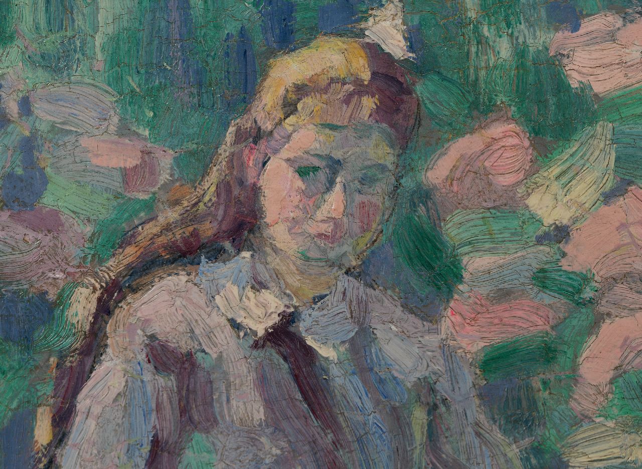 Belgische School, 2e helft 19e eeuw kunstwerk • schilderij • te koop Jong meisje in de tuin