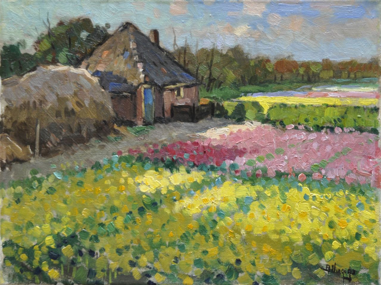 Ben Viegers kunstwerk • schilderij • voorheen te koop Bloeiende bollenvelden