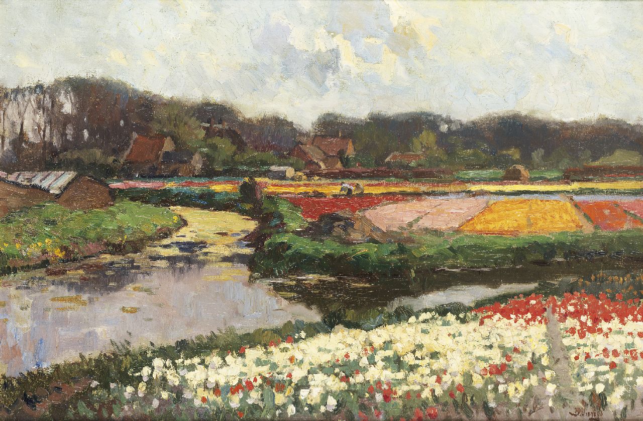Ben Viegers kunstwerk • schilderij • voorheen te koop Bloeiende tulpenvelden