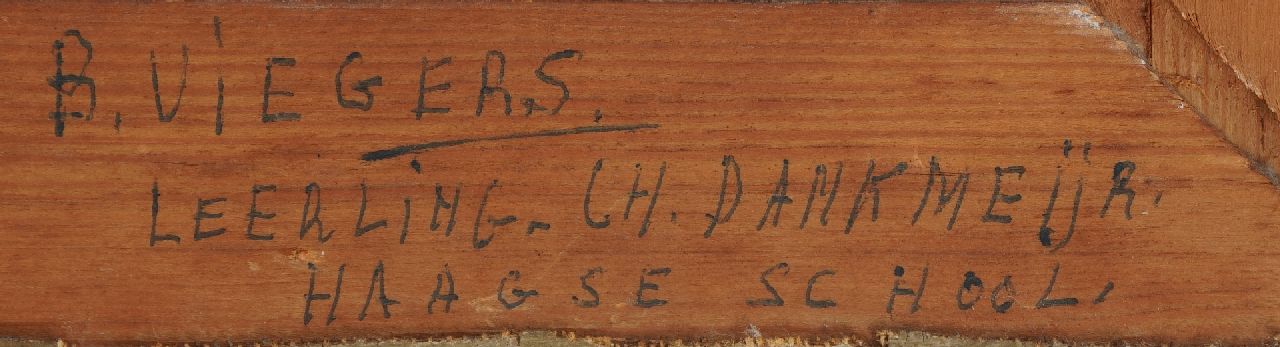 Ben Viegers werd als schilder aanvankelijk sterk beinvloed door de Haagse School. Geleidelijk aan maakten zijn grijstonen echter plaats voor een mediterraan coloriet en helder licht. Dit werd nog versterkt door een korte, impressionistische toets, die samen met zinderende kleuren als kobaltblauw, oranje en zeegroen zijn handelsmerk zou worden. Zoals zo vele tijdgenoten schilderde Viegers regelmatig op de Veluwe. Ook woonde hij langere tijd in Nunspeet, waar het landschap en de boerenbevolking een voortdurende bron van inspiratie voor hem waren.