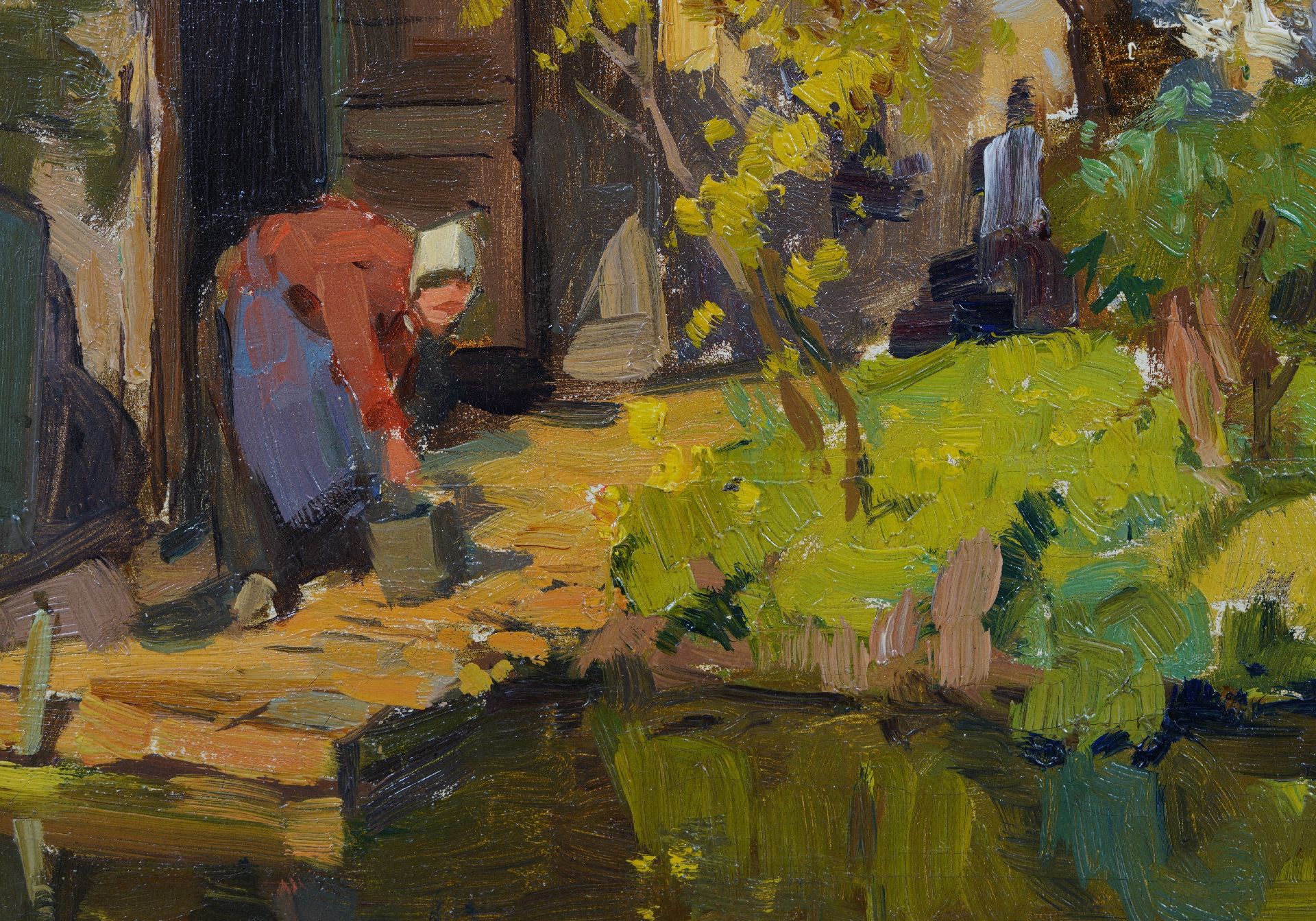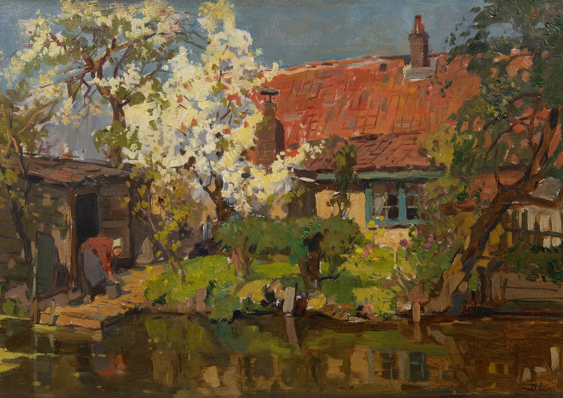 Ben Viegers kunstwerk • schilderij • te koop Boerenerf aan het water