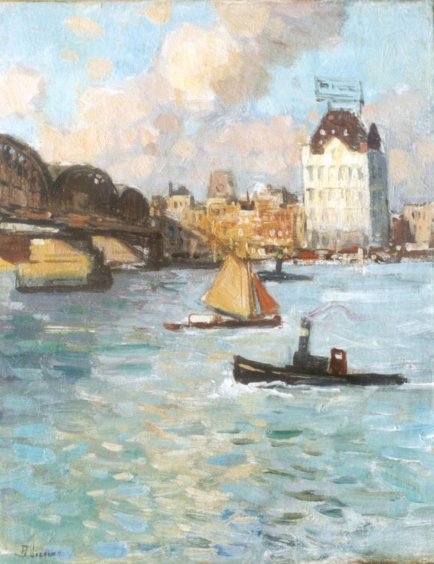 Ben Viegers kunstwerk • schilderij • voorheen te koop Gezicht op de Maas met Het Witte Huis, Rotterdam