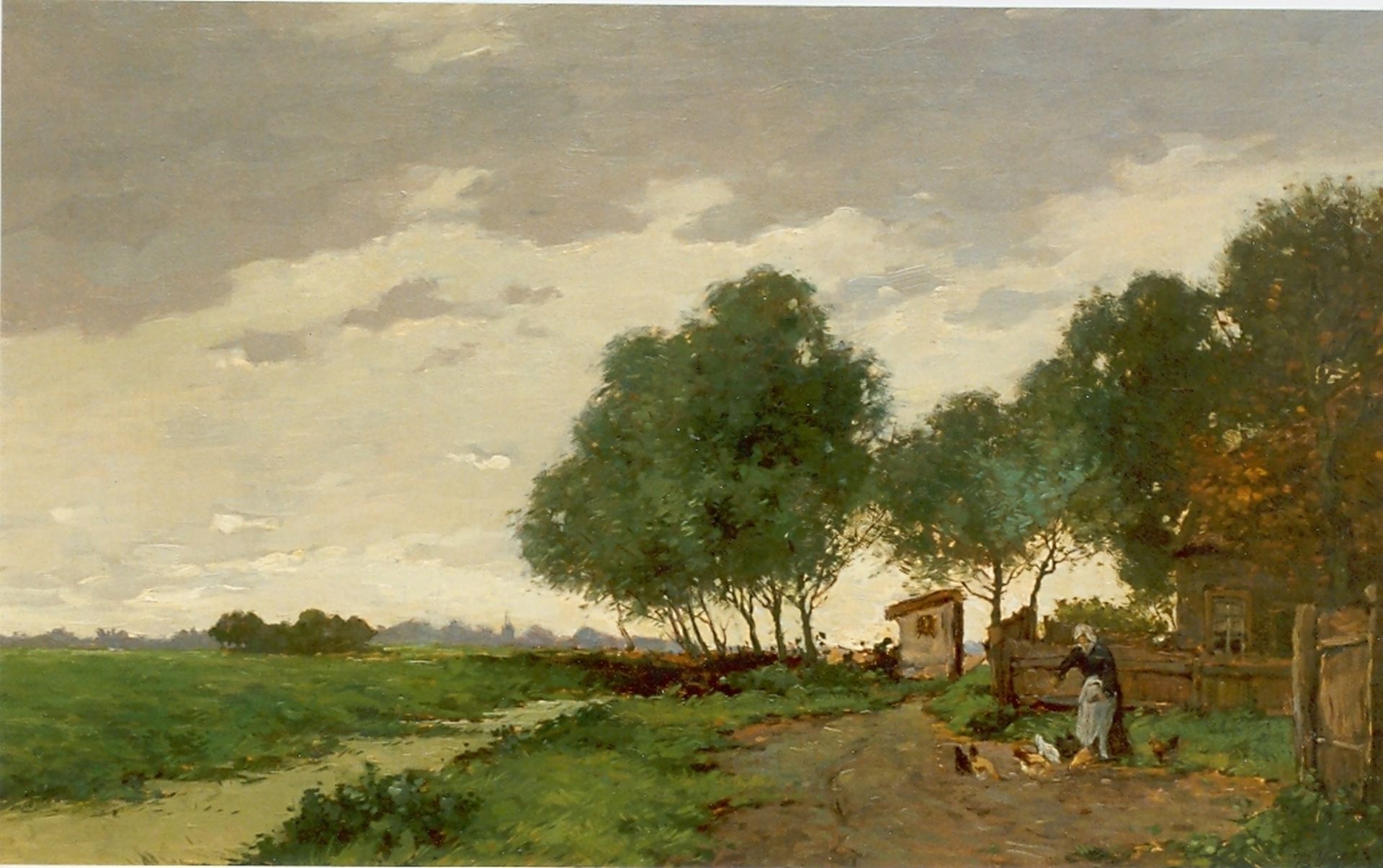 Polderlandschap met boerin en boerderij