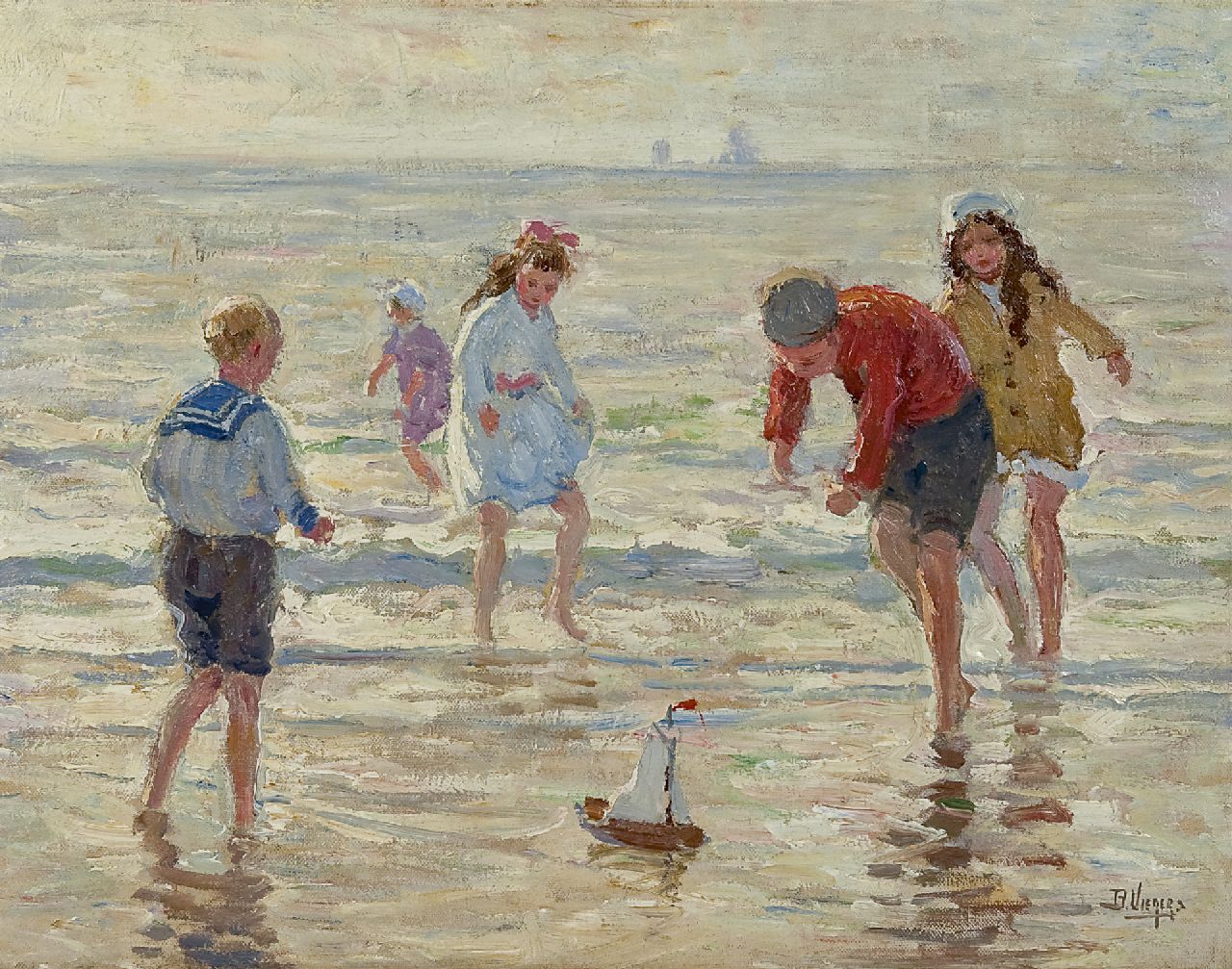 Ben Viegers kunstwerk • schilderij • voorheen te koop Strandplezier