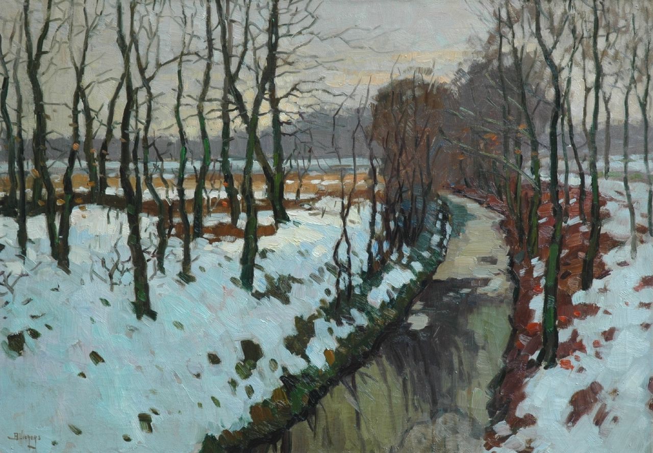 Ben Viegers kunstwerk • schilderij • voorheen te koop Veluws beeklandschap in de winter