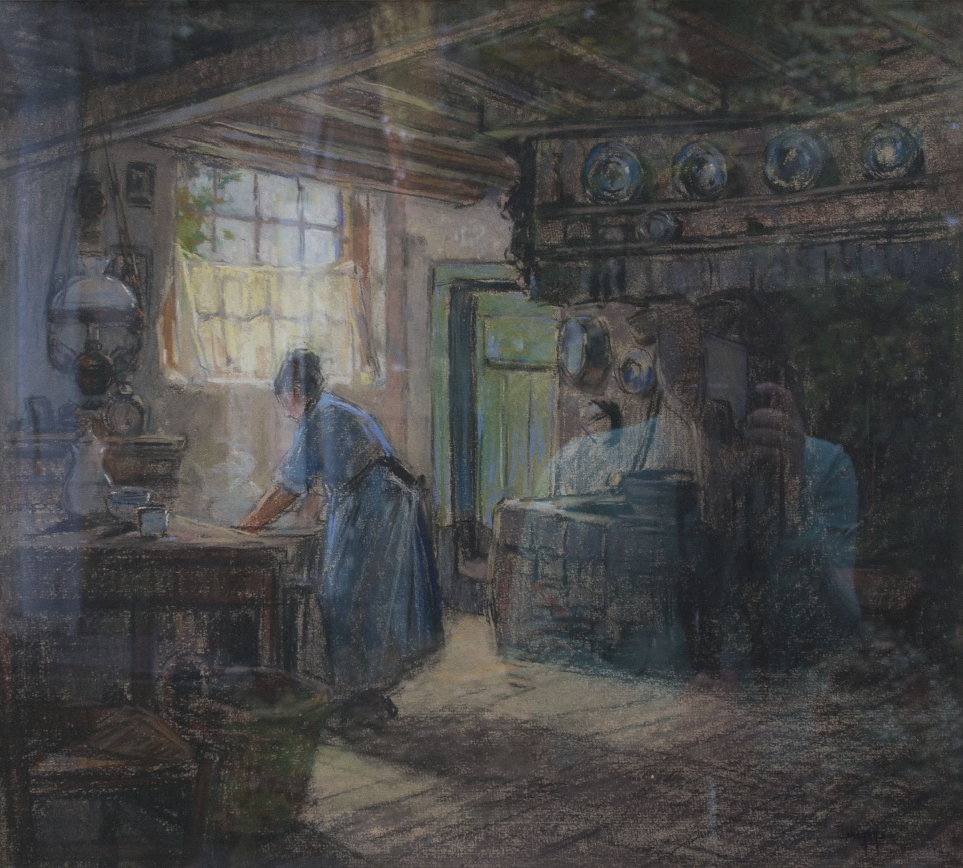 Ben Viegers kunstwerk • aquarel • tekening • voorheen te koop Veluws boereninterieur
