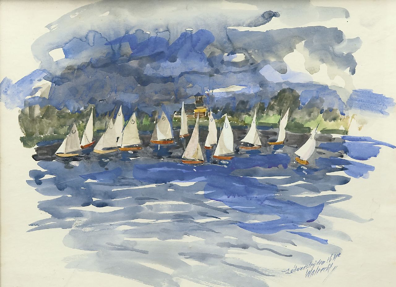 Ben Walrecht kunstwerk • aquarel • tekening • voorheen te koop Zeilwedstrijd 16m2 op het Zuidlaardermeer