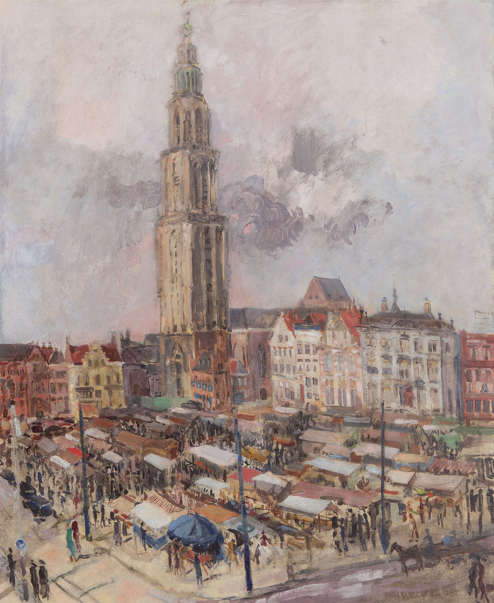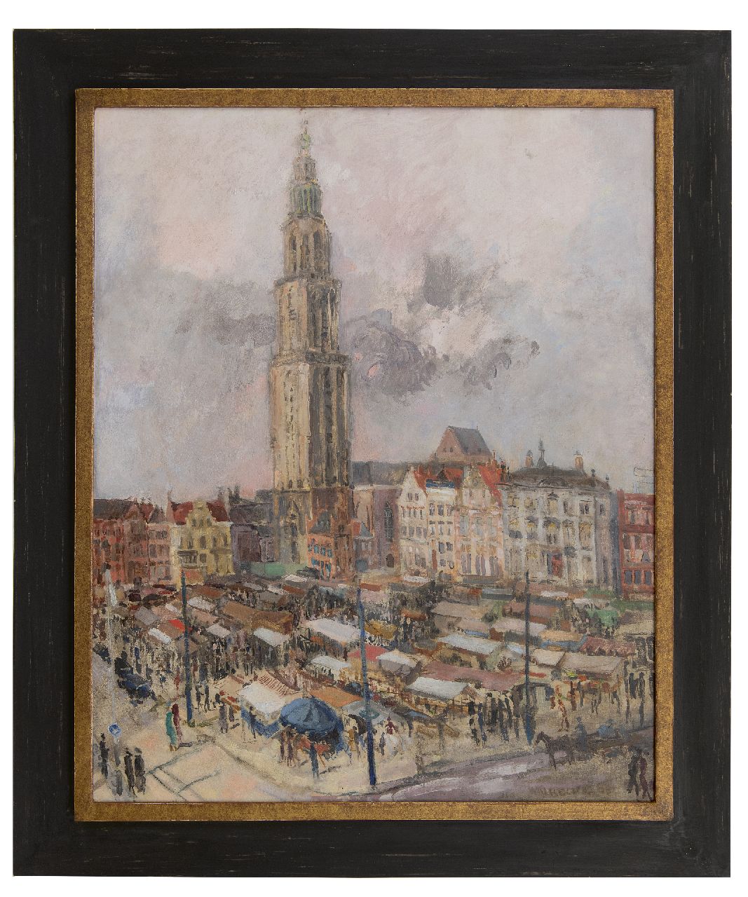 Ben Walrecht kunstwerk • schilderij • voorheen te koop Marktdag bij de Martinitoren, Groningen