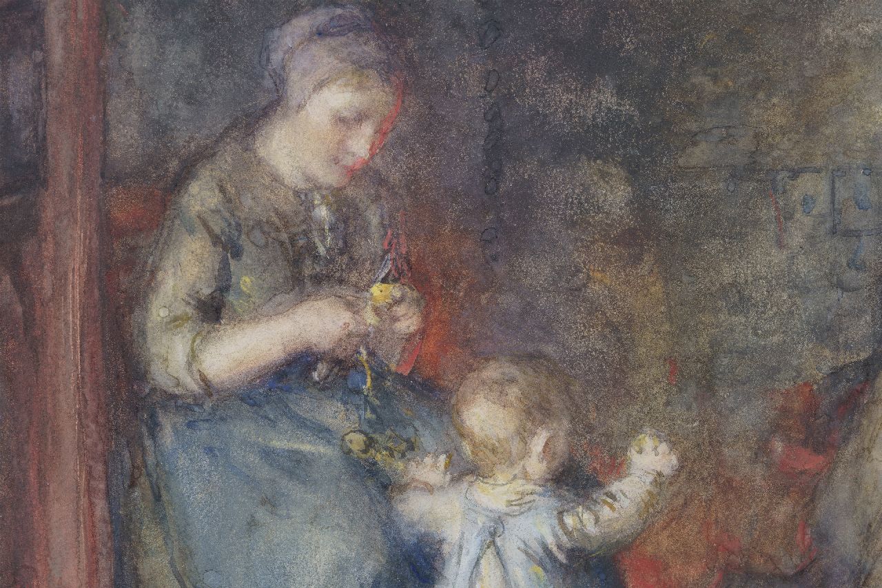 Bernard Blommers kunstwerk • aquarel • tekening • te koop Bij de haard