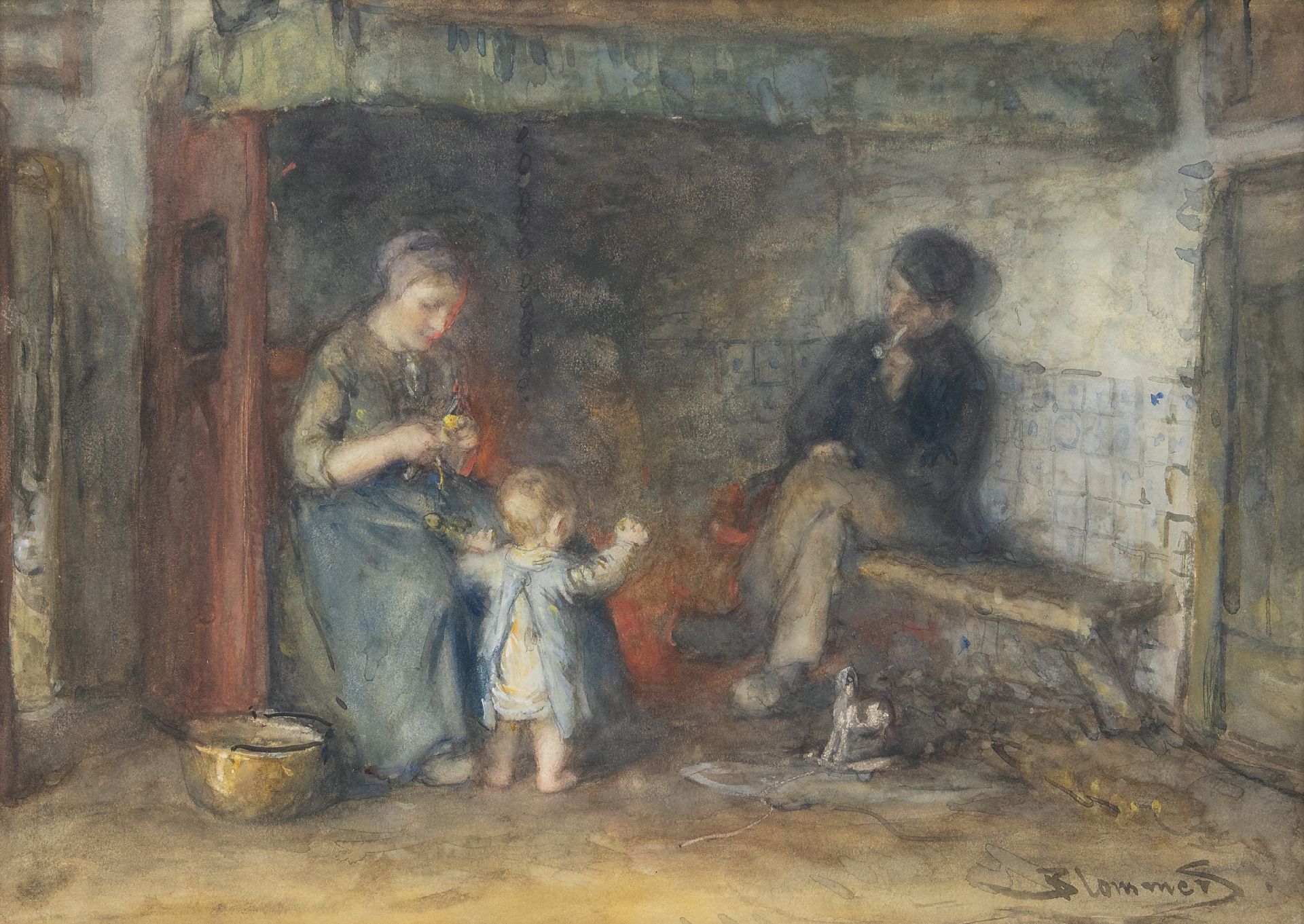 Bernard Blommers | Vissersfamilie bij de haard, aquarel op papier, 51,7 x 71,0 cm, gesigneerd r.o.