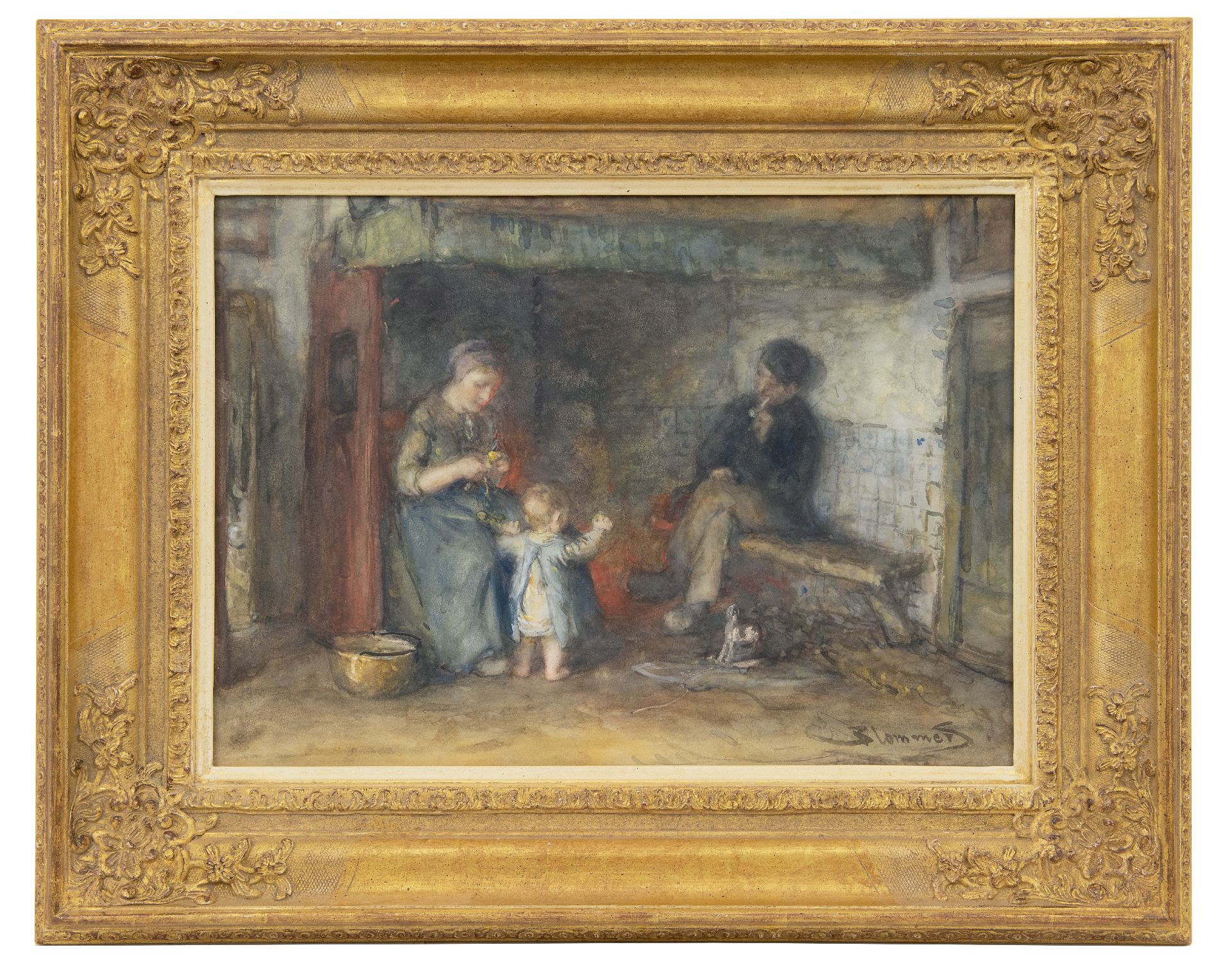 Bernard Blommers kunstwerk • aquarel • tekening • te koop Bij de haard