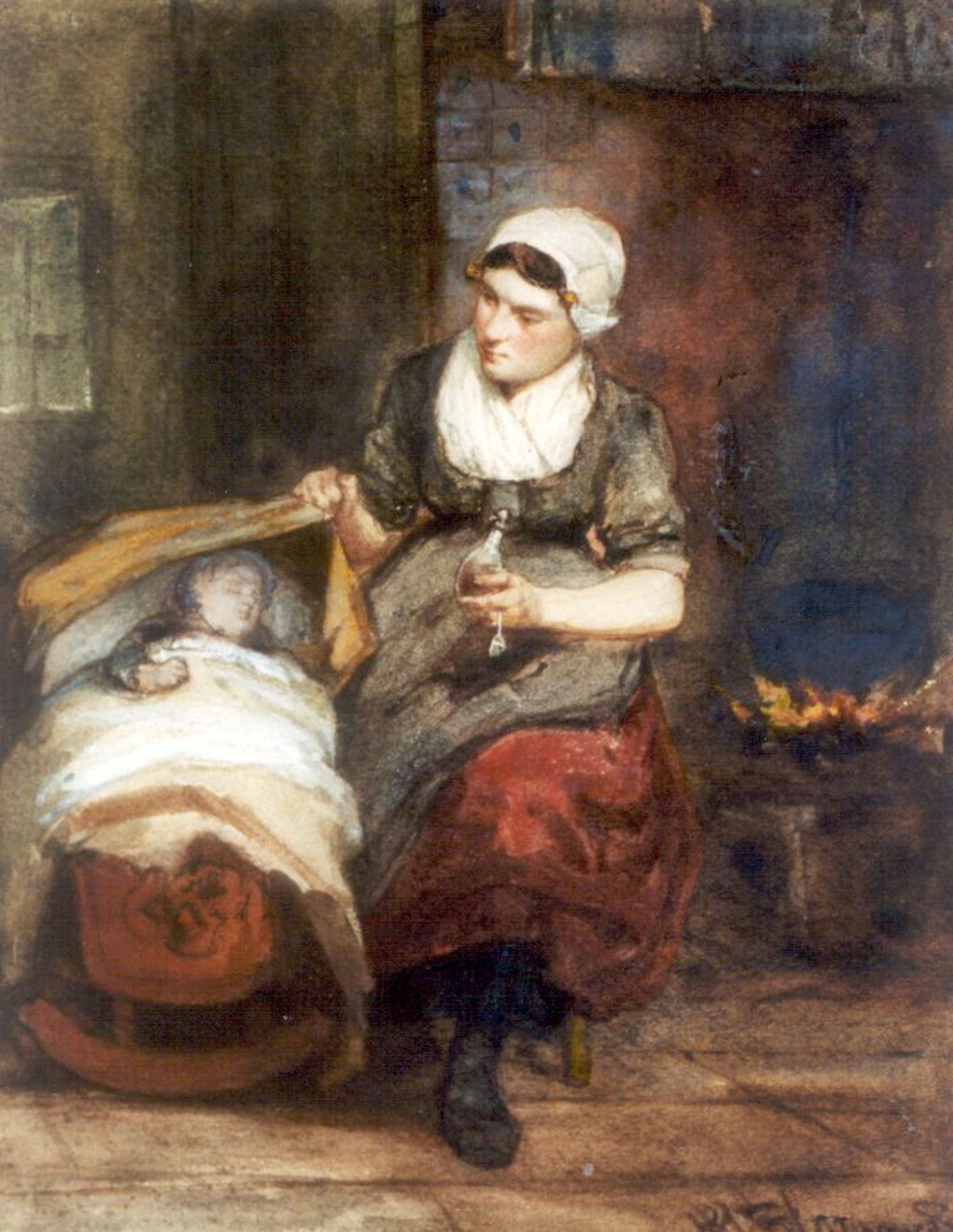 Bernard Blommers kunstwerk • aquarel • tekening • voorheen te koop Bij de wieg