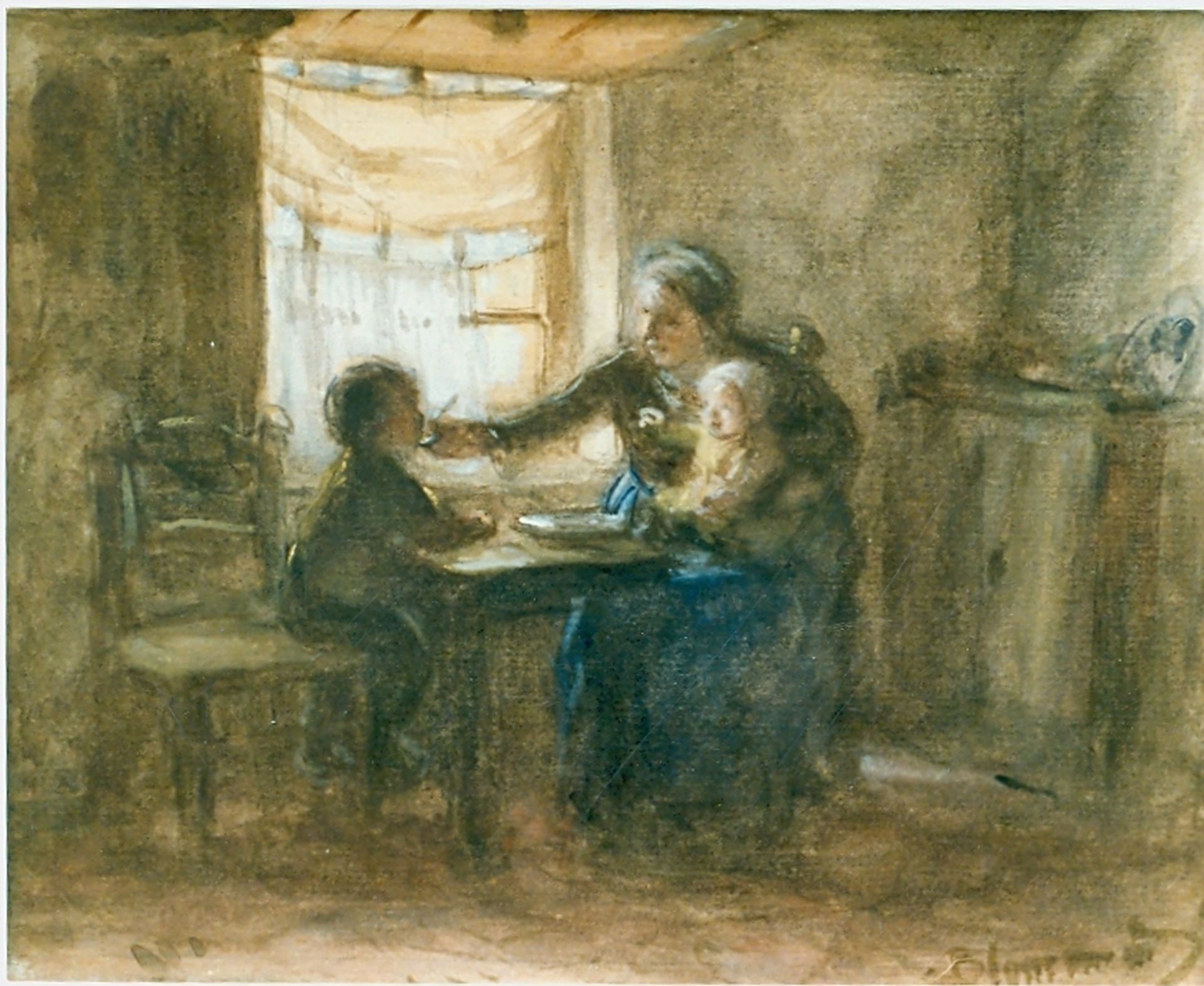 Bernard Blommers kunstwerk • aquarel • tekening • voorheen te koop Moeder geeft haar kind te eten