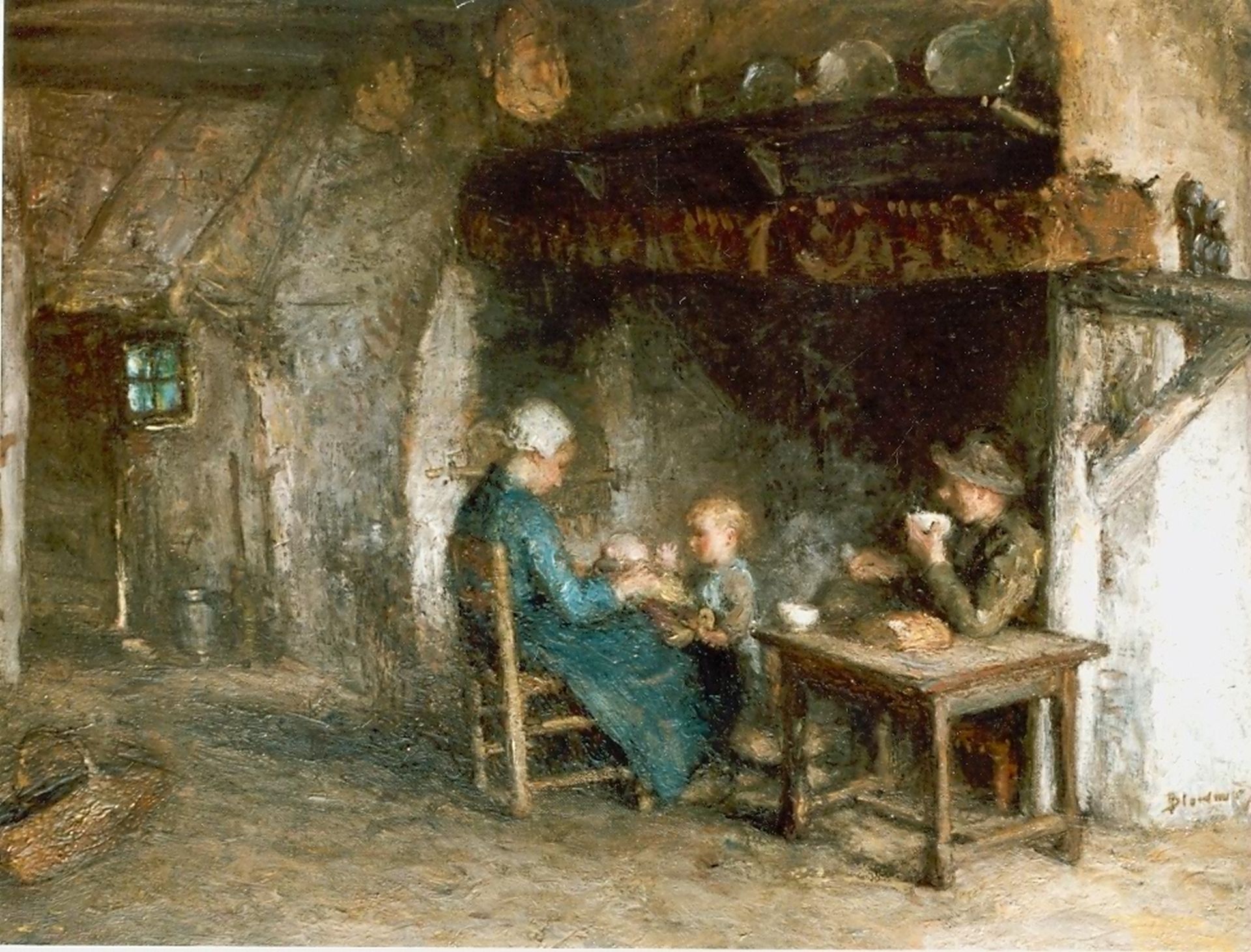 Bernard Blommers kunstwerk • schilderij • voorheen te koop Boerenfamilie bij de schouw