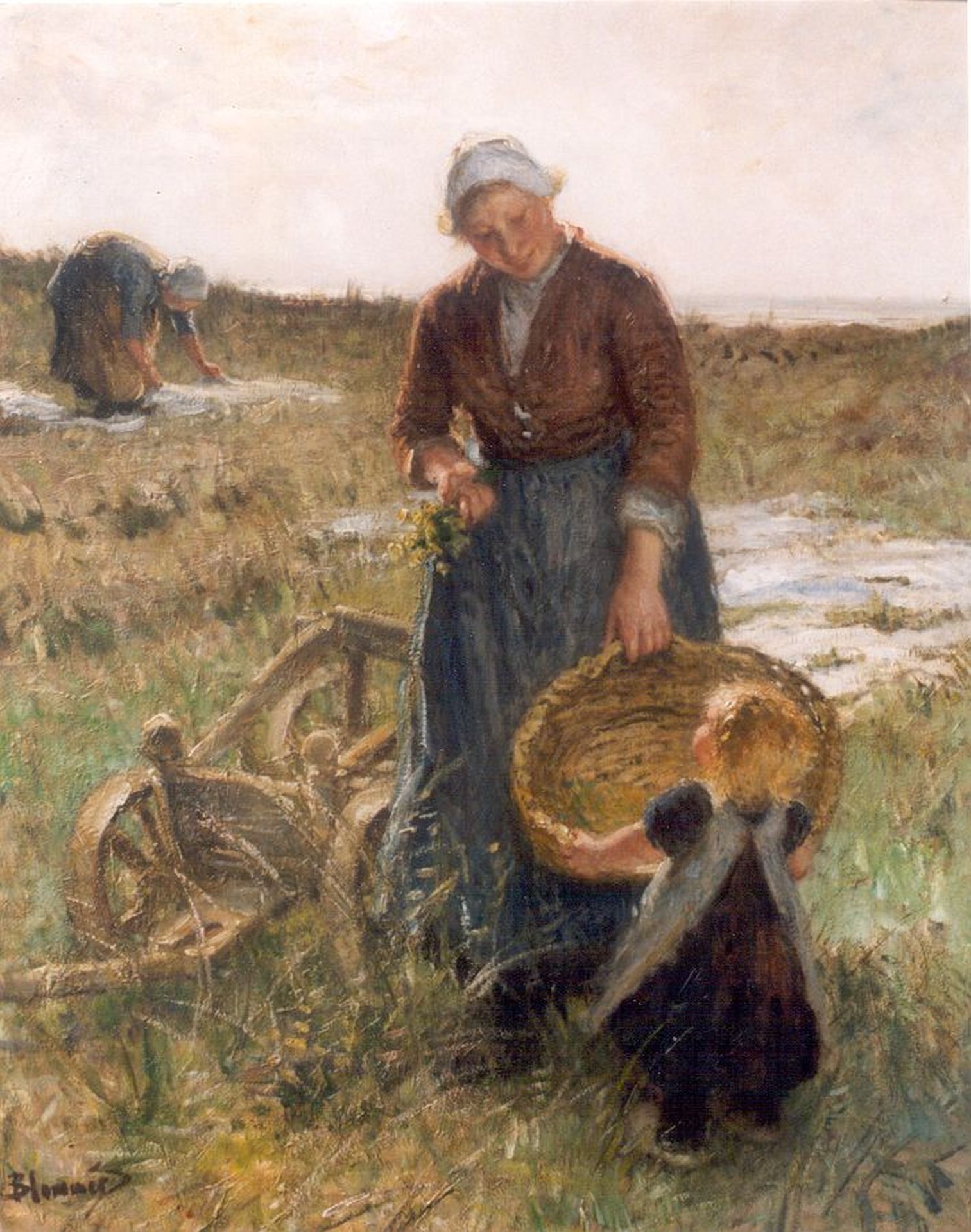 Het eenvoudige leven van boeren, en de vissers in Katwijk aan Zee en Scheveningen koos Blommers als onderwerp voor zijn schilderijen en aquarellen. Van grote invloed op zijn werk was Jozef Israëls. Blommers legde echter vooral de nadruk op het gelukkige familieleven en niet zoals Israëls op de barre levensomstandigheden waarin deze bevolkingsgroep verkeerde. Zijn interieurs stralen tevredenheid en stil geluk uit. Het werk van Blommers genoot in zijn tijd een enorme populariteit, vooral in het buitenland. De meeste belangrijke musea hebben werk van zijn hand.