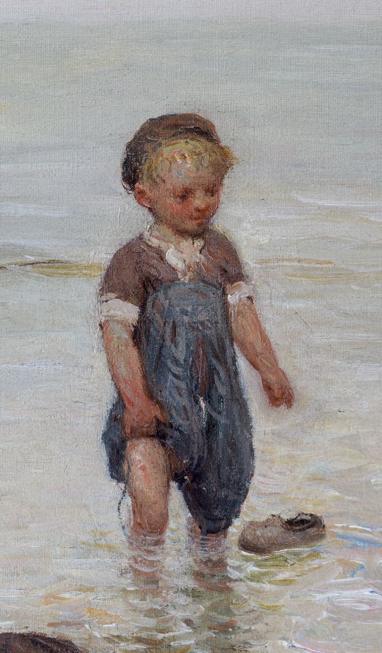 Bernard Blommers | Spelen in de branding, olieverf op doek, 64,4 x 100,6 cm, gesigneerd l.o.