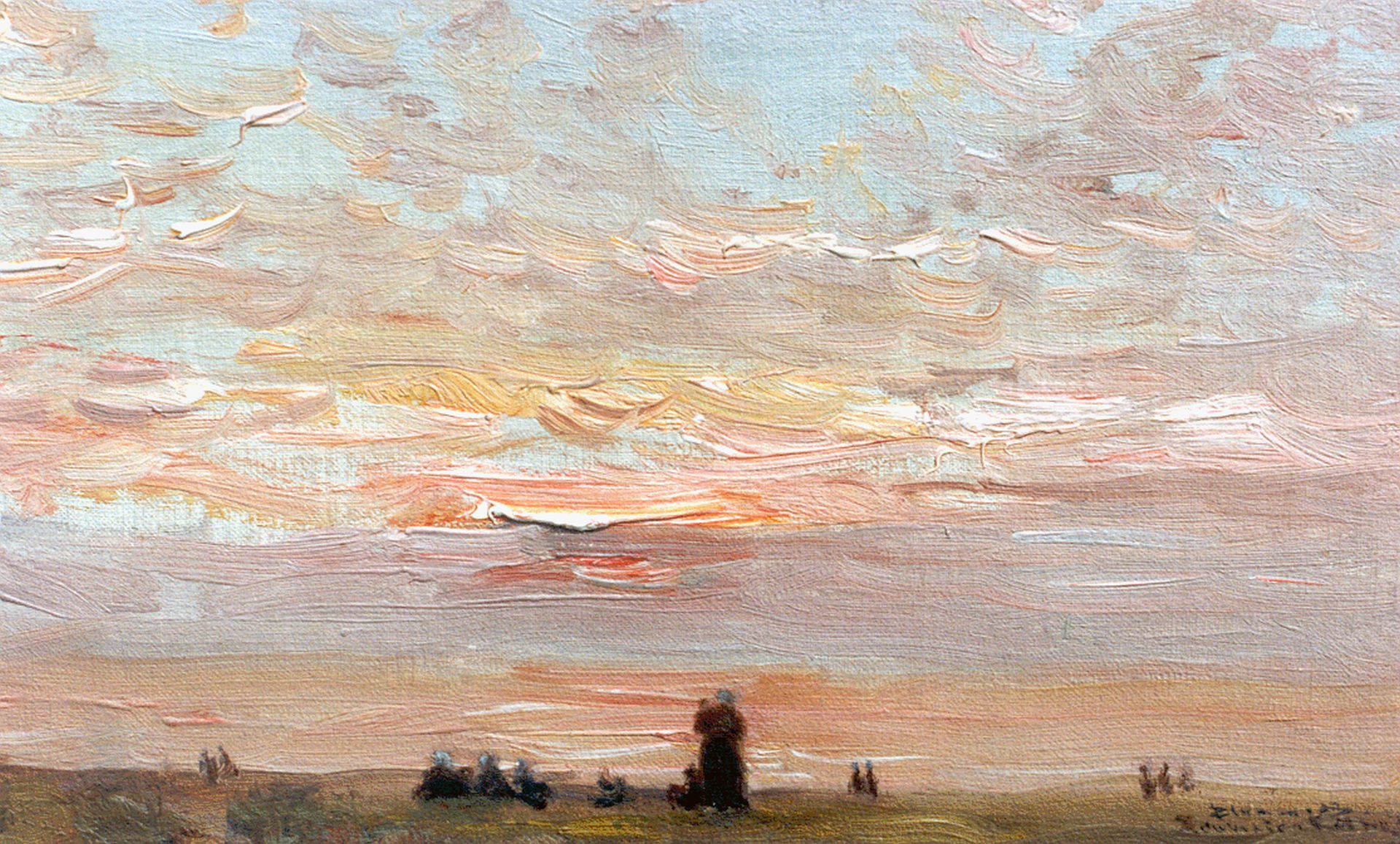 Bernard Blommers kunstwerk • schilderij • voorheen te koop Strandgezicht 'Souvenir aan Katwijk'