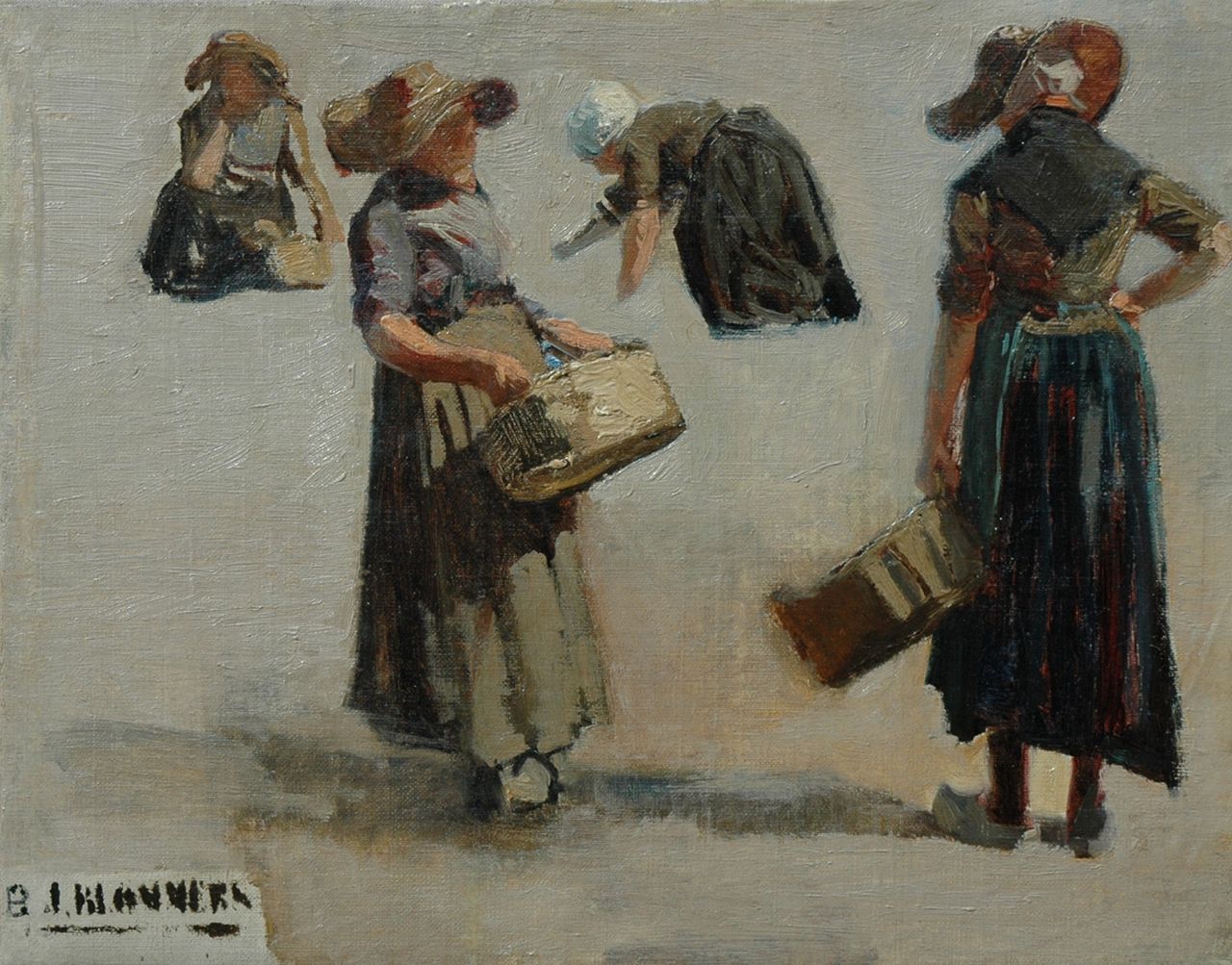 Bernard Blommers kunstwerk • schilderij • voorheen te koop Studie van Katwijkse visverkoopsters