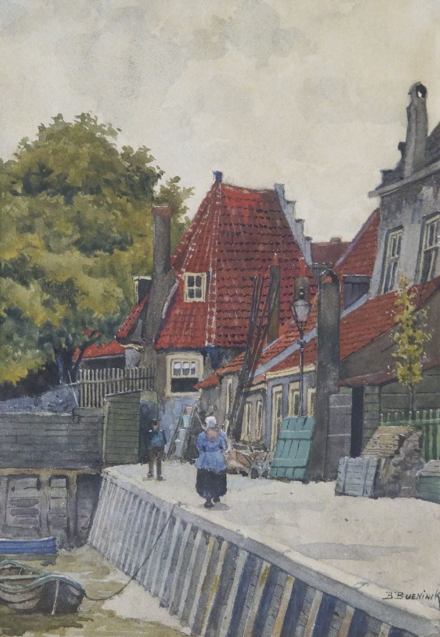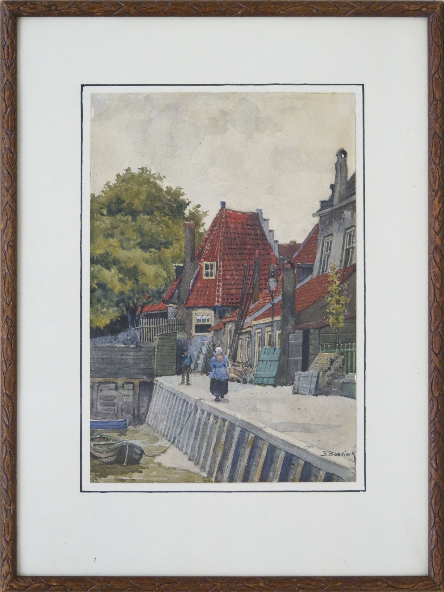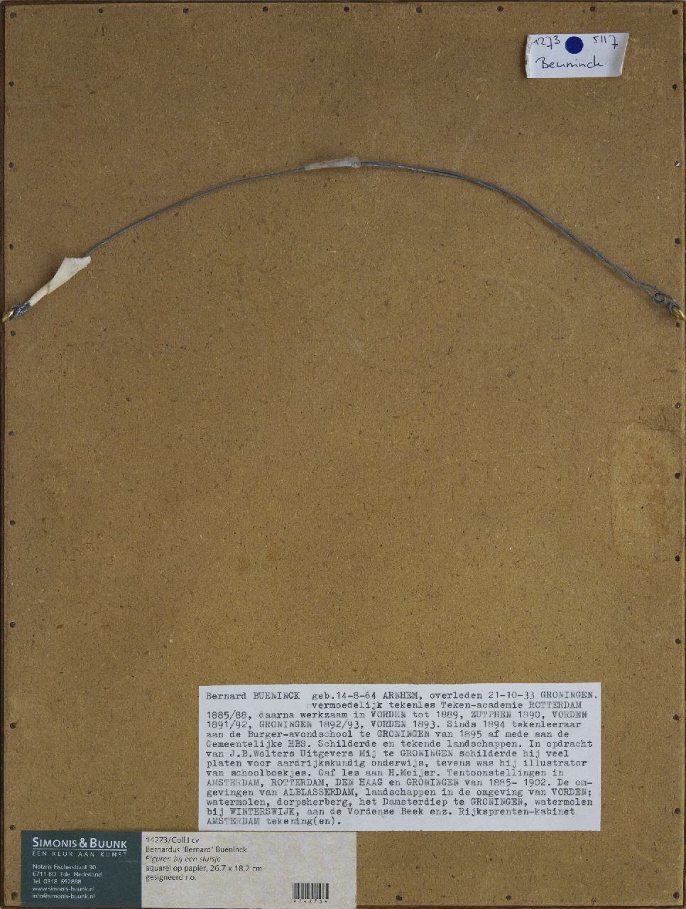 Bernard Bueninck kunstwerk • aquarel • tekening • voorheen te koop Figuren bij een sluisje