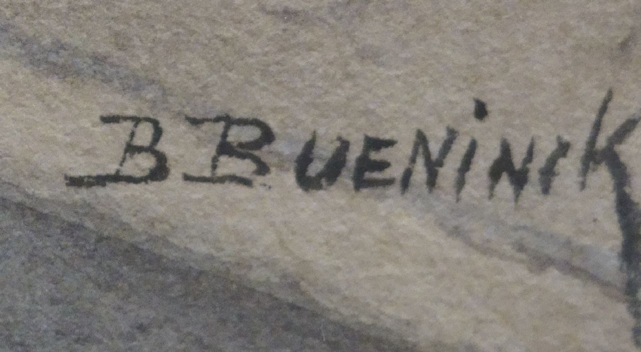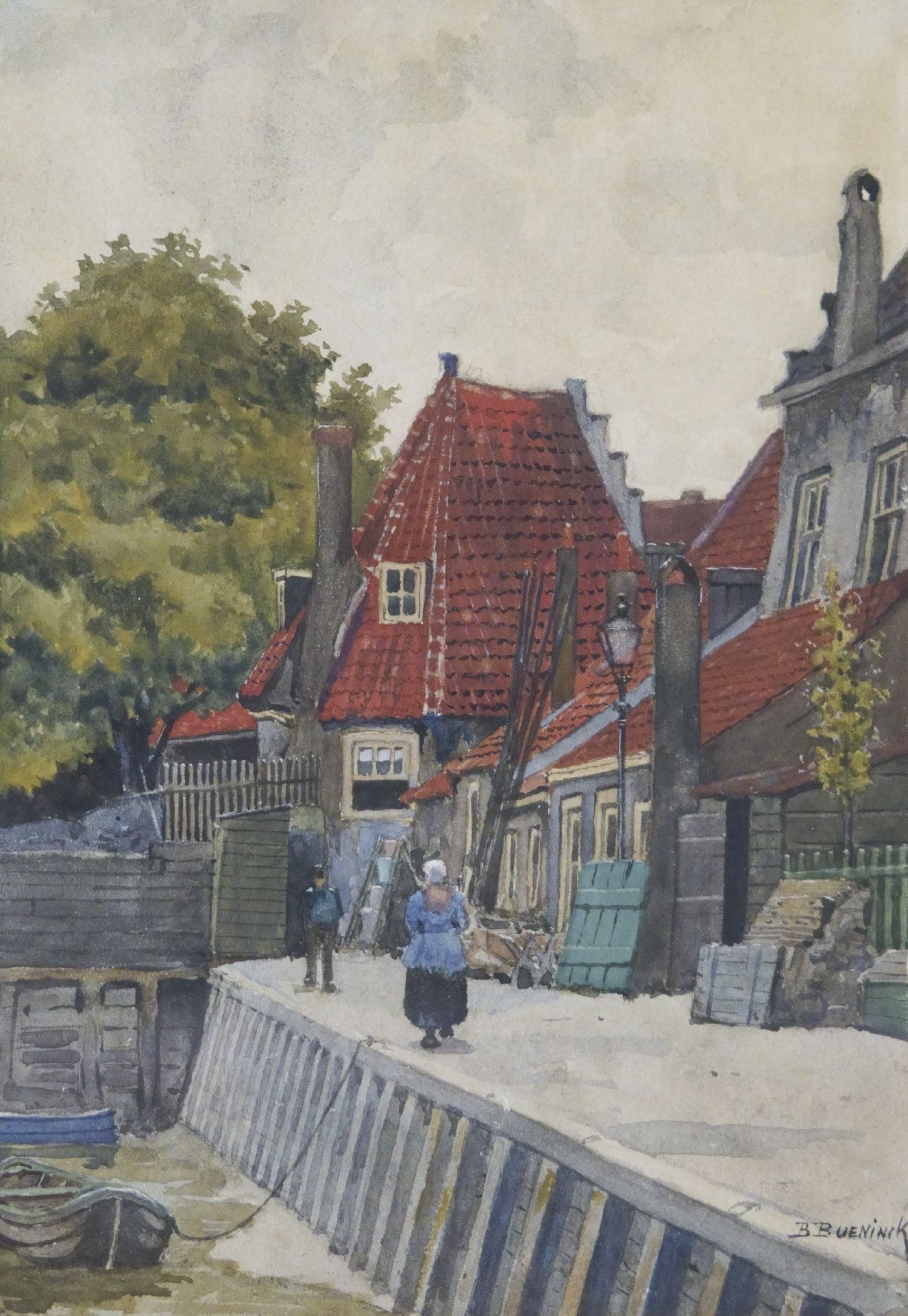 De schilder-tekenaar Bernard Bueninck vestigde zich in 1894 vanuit Vorden in Groningen, waar hij tekenleraar werd aan de gemeentelijke HBS. Naast zijn vrije werk – landschappen, portretten, havengezichten – kreeg hij in de daaropvolgende jaren ook bekendheid met de platen die hij schilderde voor het aardrijkskundig onderwijs: veelal panoramische landschappen, rivier- en havengezichten in vogelvlucht neergezet. Tussen 1900 en 1925 werkte hij in opdracht van de Groningse uitgeverij J.B. Wolters mee aan de beroemde wandplatenserie Nederland in woord en beeld.