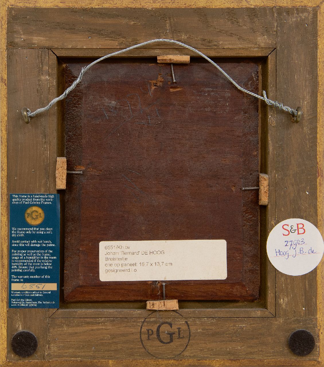 Bernard de Hoog is vooral bekend geworden als schilder van stemmige Hollandse boereninterieurs, een genre dat vooral na 1880 in ons land zeer populair werd. Hij woonde en werkte in Amsterdam totdat hij in 1899 verhuisde naar Laren, waar hij kennis maakte met het werk van schilders als Albert Neuhuys, Hendrik Kever en Evert Pieters. In zijn interieurs legt De Hoog over het algemeen de nadruk op de figuren, meestal moeders en kinderen, die in het rustig voortgaan met hun dagelijkse bezigheden het toonbeeld zijn van een sereen, huiselijk geluk. Na 1924, toen hij in Den Haag woonde, schilderde De Hoog ook het vissersleven en zo nu en dan een landschap met vee. Veel van zijn werk werd gekocht door verzamelaars in Amerika, Canada en Engeland.
