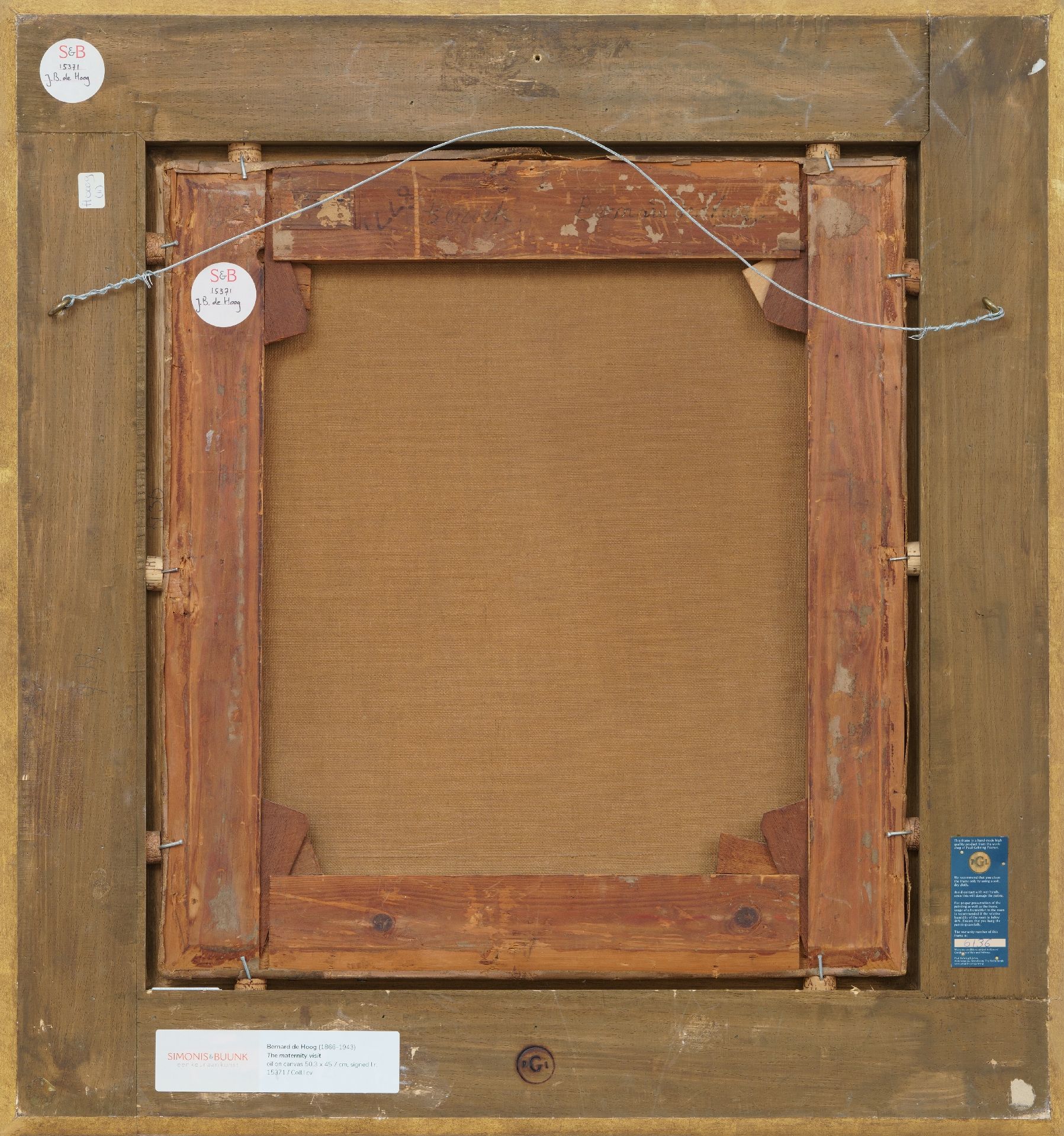annotatie verso op spieraam: 'Bezoek. Bernard de Hoog'