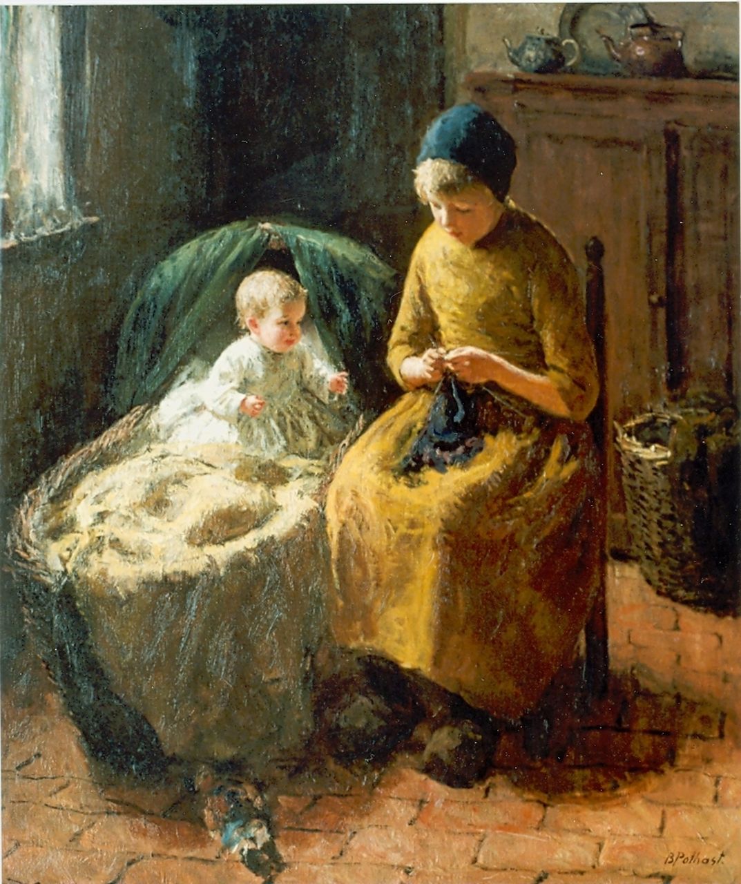 De van origine Belgische schilder Bernard Pothast woonde en werkte eerst in Amsterdam en vestigde zich in 1911 in Laren. Daar sloot hij zich aan bij de Larense School, waar eerder schilders als Hendrik Kever en Albert Neuhuys deel van uitmaakten. Hij schilderde er het leven van de eenvoudige boerenbevolking in en om de boerderij en op het land. Vooral zijn interieurs met boerenvrouwen en kinderen stralen een serene rust uit.