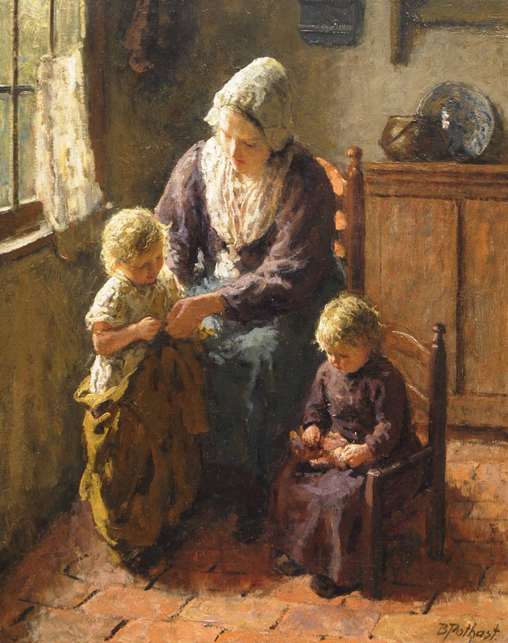 De van origine Belgische schilder Bernard Pothast woonde en werkte eerst in Amsterdam en vestigde zich in 1911 in Laren. Daar sloot hij zich aan bij de Larense School, waar eerder schilders als Hendrik Kever en Albert Neuhuys deel van uitmaakten. Hij schilderde er het leven van de eenvoudige boerenbevolking in en om de boerderij en op het land. Vooral zijn interieurs met boerenvrouwen en kinderen stralen een serene rust uit.