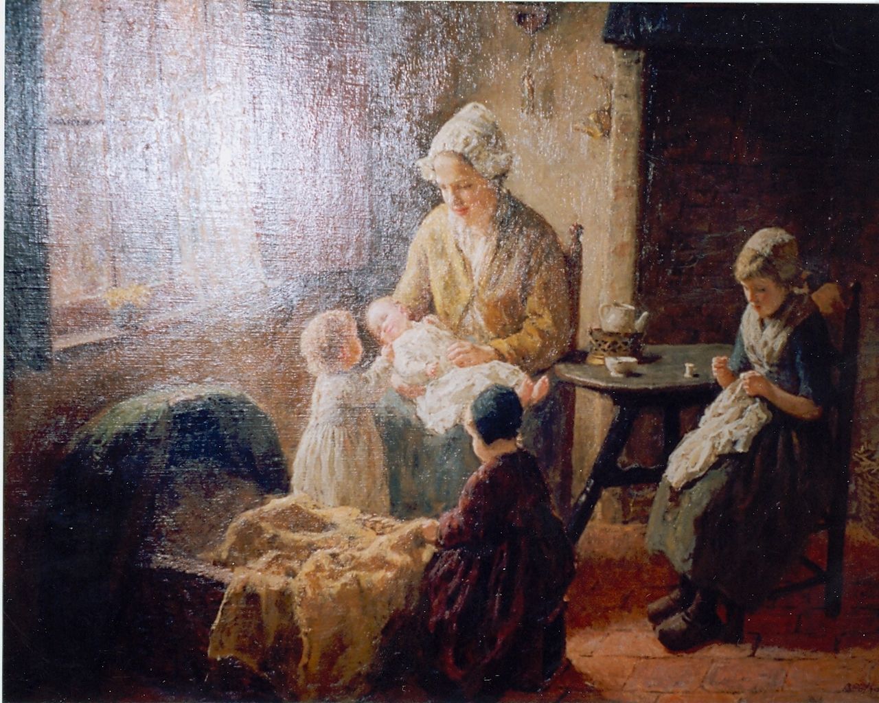 Bernard Pothast kunstwerk • schilderij • voorheen te koop Huiselijk familie tafereel