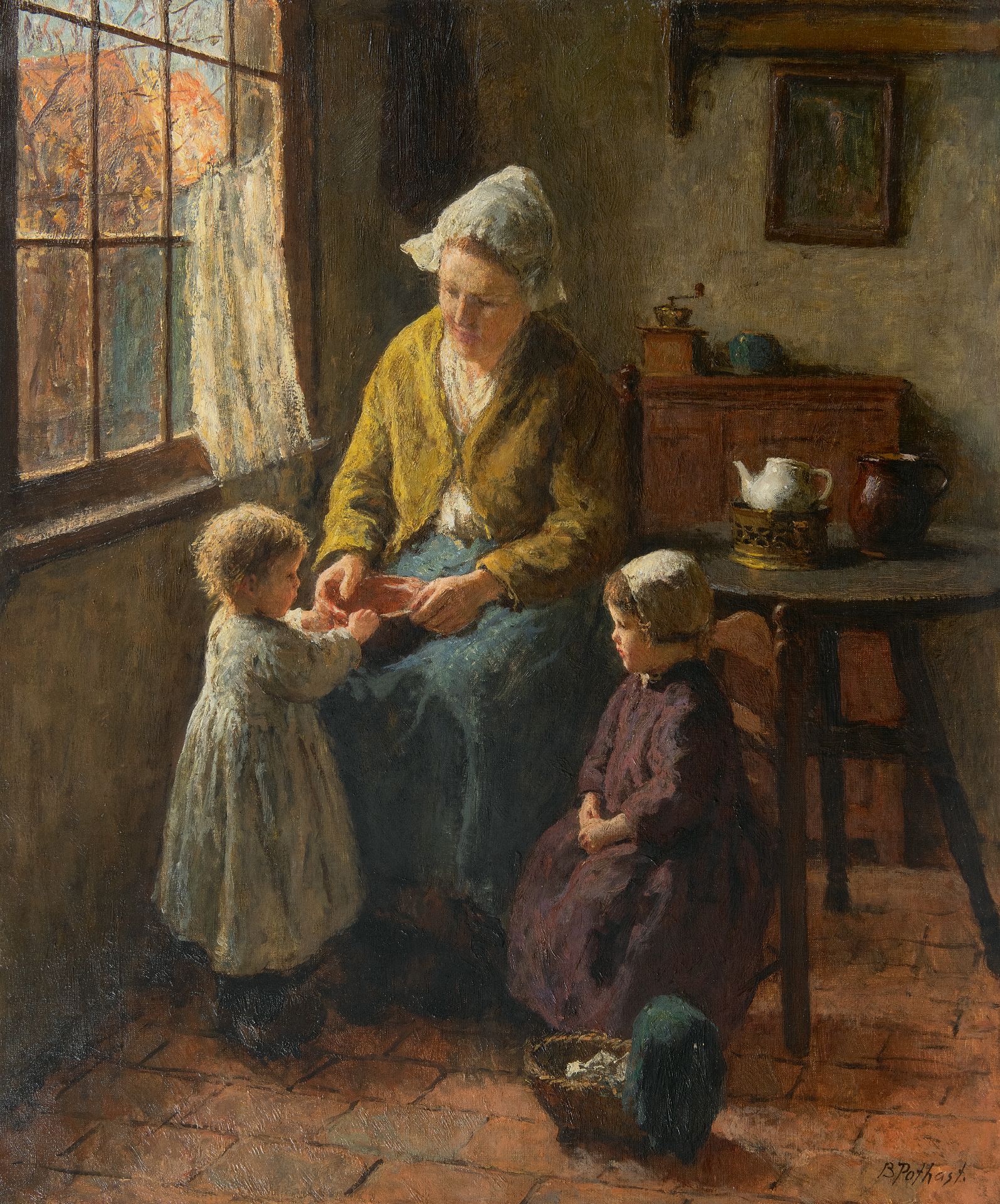 De van origine Belgische schilder Bernard Pothast woonde en werkte eerst in Amsterdam en vestigde zich in 1911 in Laren. Daar sloot hij zich aan bij de Larense School, waar eerder schilders als Hendrik Kever en Albert Neuhuys deel van uitmaakten. Hij schilderde er het leven van de eenvoudige boerenbevolking in en om de boerderij en op het land. Vooral zijn interieurs met boerenvrouwen en kinderen stralen een serene rust uit.