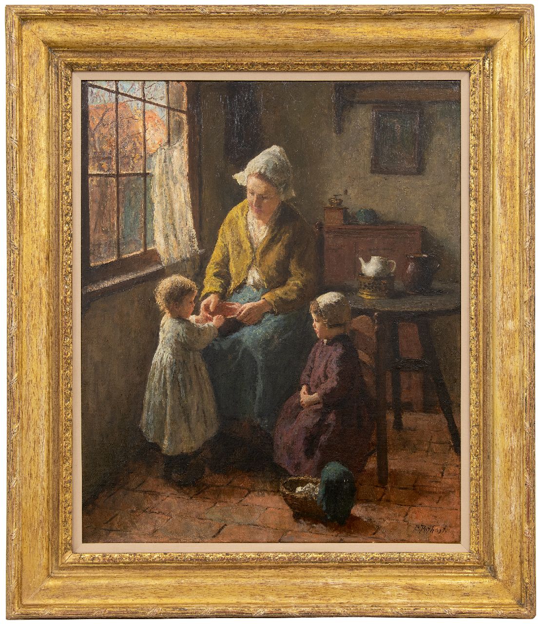 Bernard Pothast kunstwerk • schilderij • te koop Larens interieur met moeder en kinderen