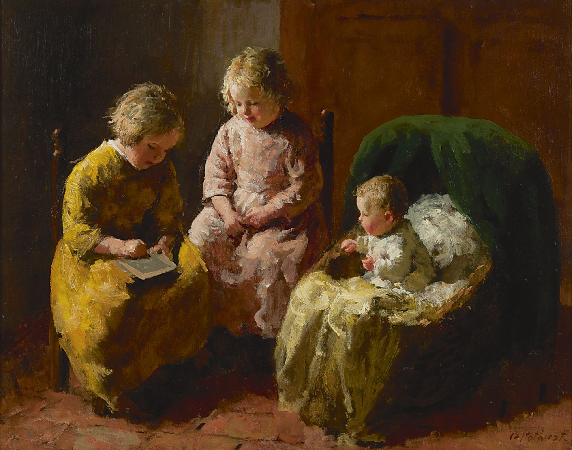 De van origine Belgische schilder Bernard Pothast woonde en werkte eerst in Amsterdam en vestigde zich in 1911 in Laren. Daar sloot hij zich aan bij de Larense School, waar eerder schilders als Hendrik Kever en Albert Neuhuys deel van uitmaakten. Hij schilderde er het leven van de eenvoudige boerenbevolking in en om de boerderij en op het land. Vooral zijn interieurs met boerenvrouwen en kinderen stralen een serene rust uit.
