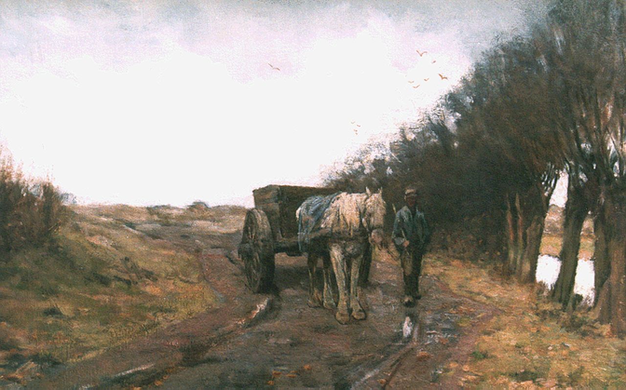 Bernard Schregel kunstwerk • schilderij • voorheen te koop Boer op weg naar huis