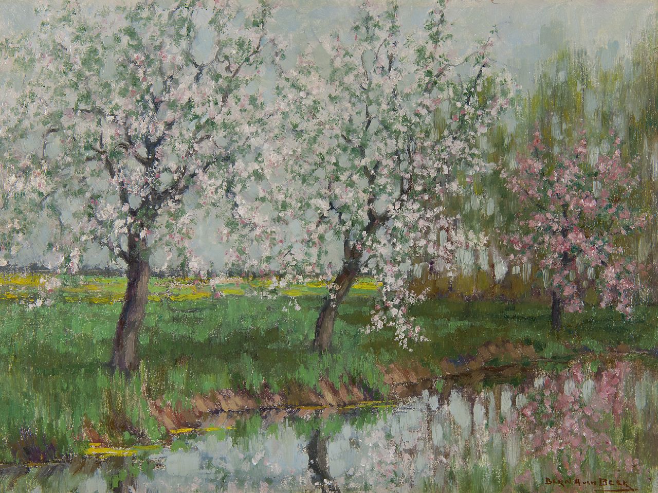 Bernard van Beek kunstwerk • schilderij • voorheen te koop Bloesembomen langs het water