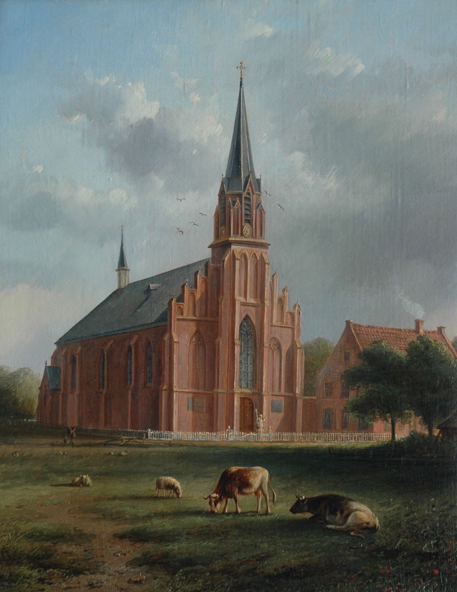 Grazend vee voor de voormalige R.K. Kerk in Egmond (of Rijndijk)