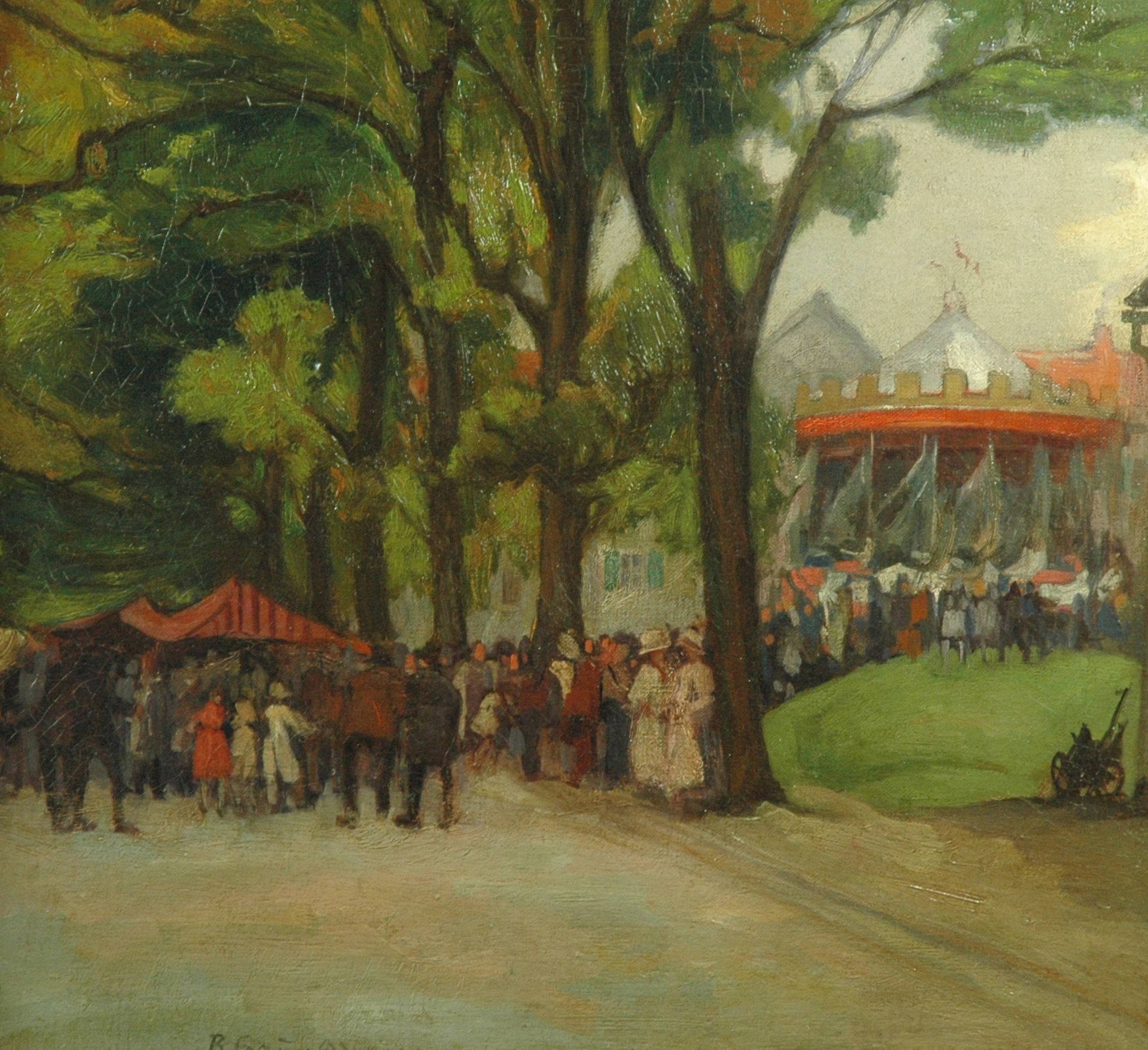 Bernhard Gauer kunstwerk • schilderij • voorheen te koop Kermis in de Hofgarten, Düsseldorf