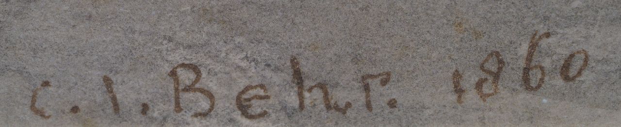 Carel Jacobus Behr was een bekende Haagse schilder van stadsgezichten. Hij werd opgeleid door B.J. van Hove, die leraar was aan de Haagse academie en daarnaast als decorschilder verbonden was aan de Koninklijke Nederlandsche Schouwburg in Den Haag. Van Hove had als leerlingen ook Sam Verveer, Huib van Hove en Joh. Bosboom. Het is bekend dat de laatstgenoemde regelmatig de stadsgezichten van Behr stoffeerde, waarbij beiden het werk signeerden. Werk van hem werd aangekocht door de gemeente Den Haag en door Koning Willem II.