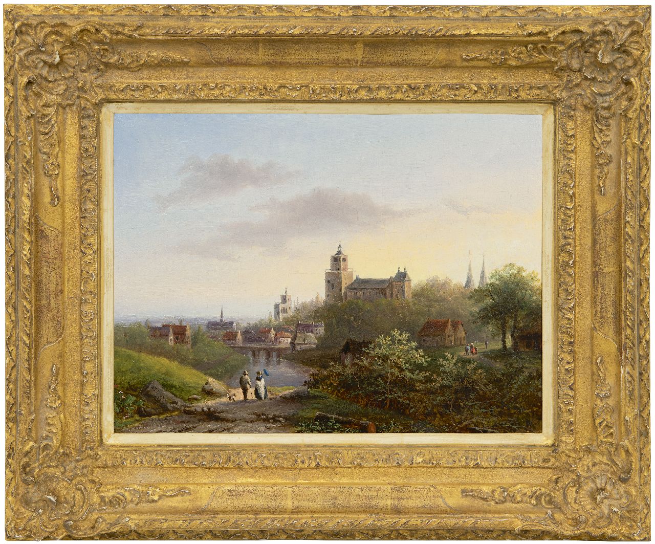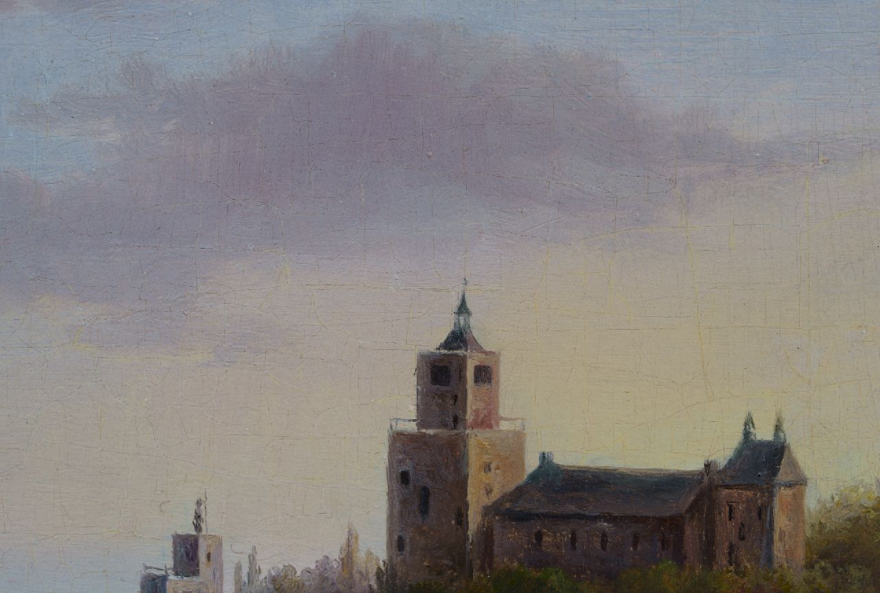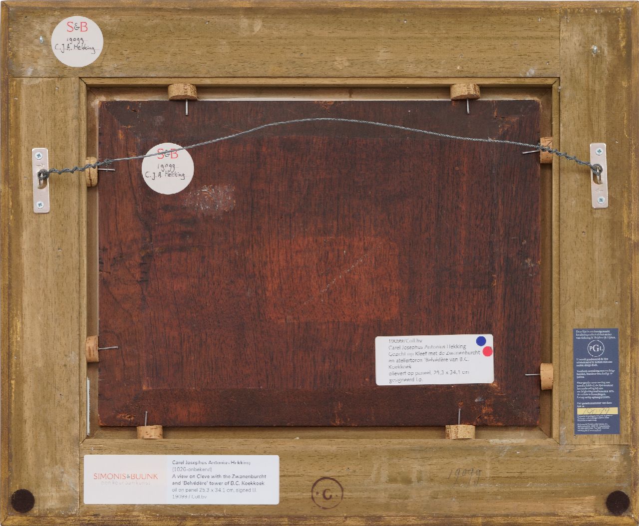 Carel Josephus Antonius Hekking kunstwerk • schilderij • te koop Gezicht op Kleef met de Zwanenburcht en ateliertoren 'Belvédère' van B.C. Koekkoek