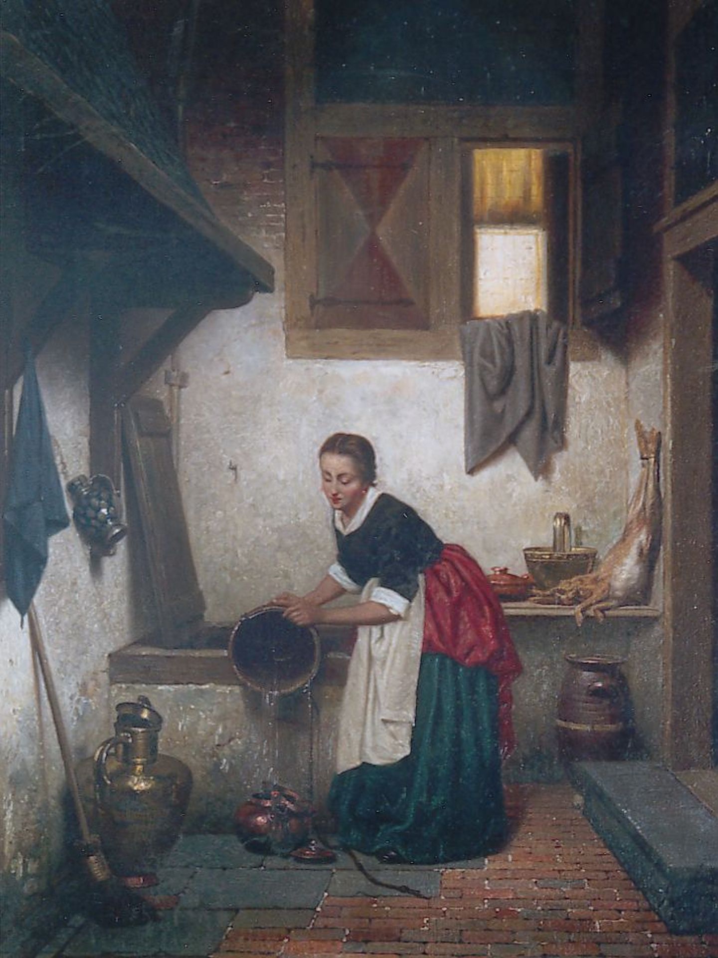 Carel Jozeph Grips kunstwerk • schilderij • voorheen te koop Aan het werk in de keuken