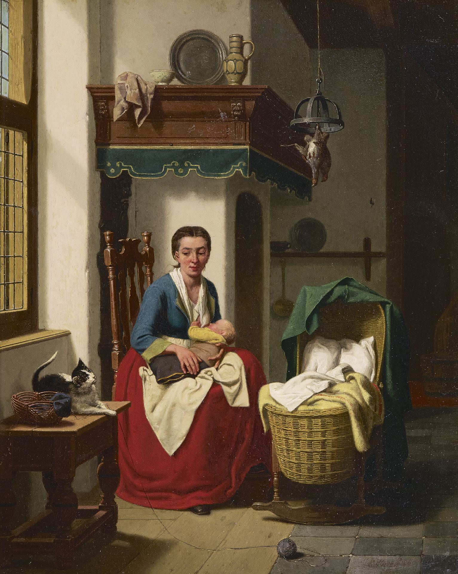 Carel Jozeph Grips kunstwerk • schilderij • voorheen te koop Het voeden van de baby